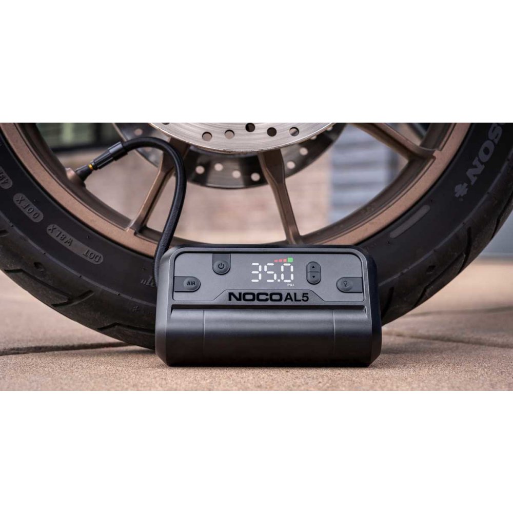 NOCO AL5 je ultra přenosný vzduchový dohušťovač napájený lithiovou baterií (12V 5A), který představuje zcela nový způsob huštění bez nutnosti použití kabelů. Je navržen pro širokou škálu aplikací, od míčů a jízdních kol až po automobily, motocykly, čtyřkolky či sekačky na trávu.