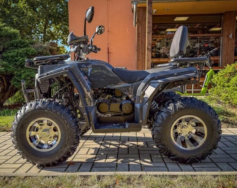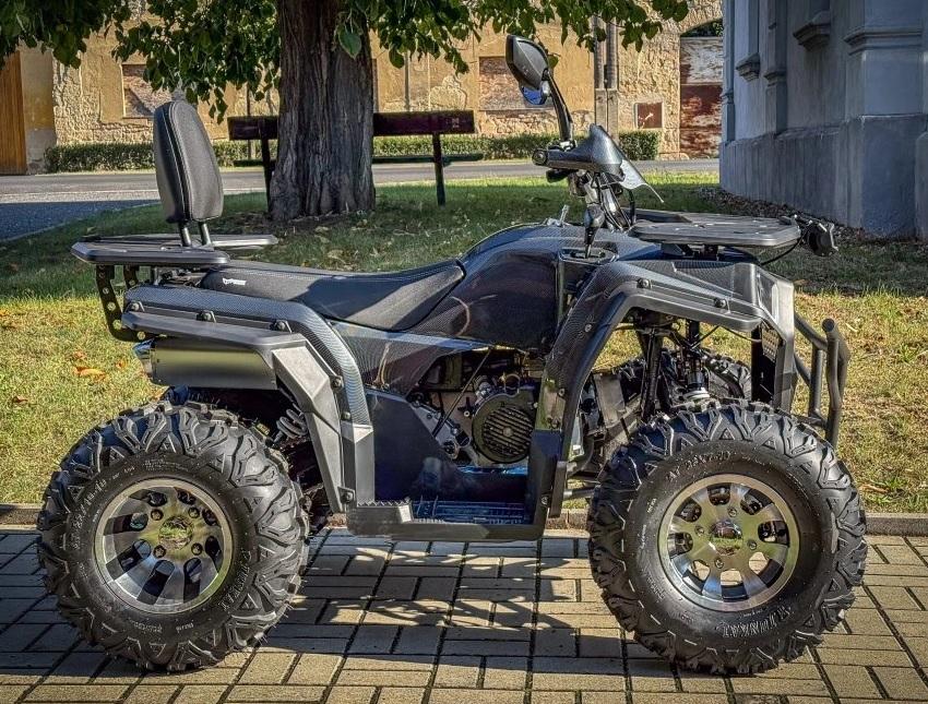 Doporučený věk zhruba od 10-ti let, 4-taktní motor, automat + zpátečka, lze dálkově vypnout/zapnout, elektrický startér, objem 200ccm, výkon 9 kW, kvalitní 10" kola, doporučená maximální hmotnost jezdce 90 kg.