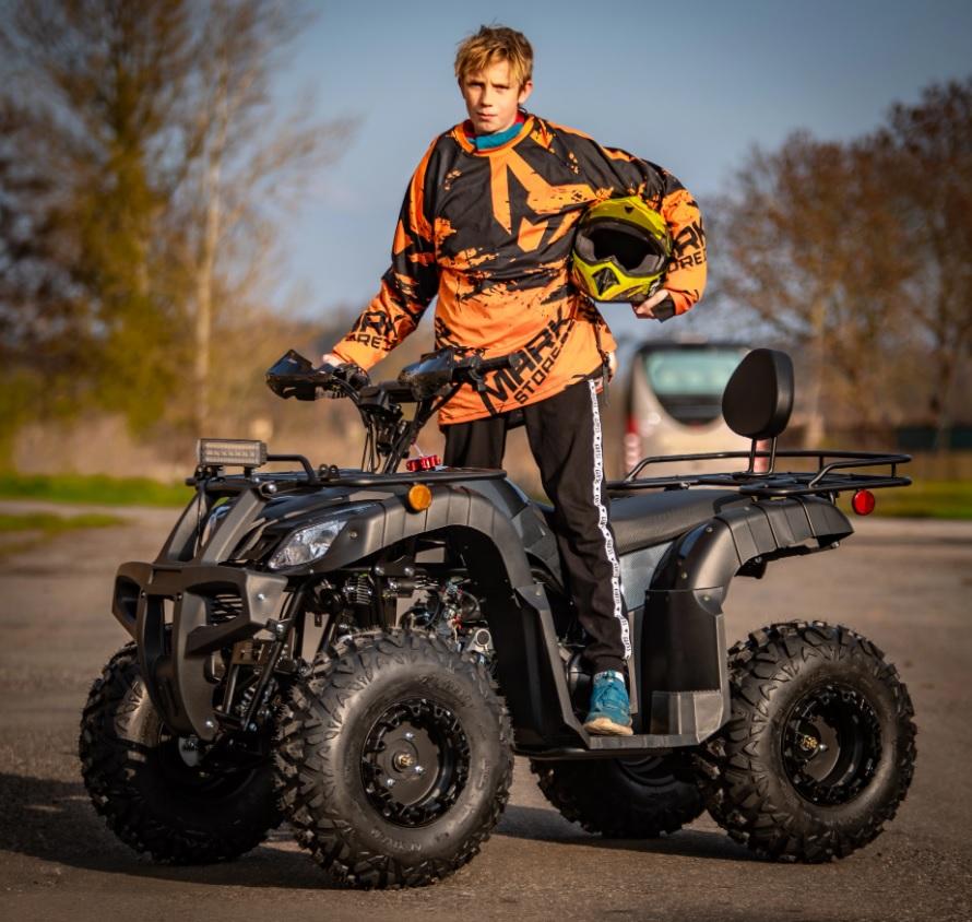 Protože jsme chtěli spojit to nejlepší pro začátečníky a pokročilé vznikla tato 200ccm čtyřkolka. Nabízí víc zábavy pro zkušenější dobrodruhy a zároveň je to snadno ovladatelný stroj s řadou bezpečnostních prvků pro začátečníky. Děti se za ní vždy otočí. Pokud máš doma sourozence, mohou jezdit spolu, protože tento model má opěrku pro spolujezdce. Jako rodič můžeš snadno nastavit plynovou páčku a postupně přidávat výkon. Čtyřkolka má dálkové ovládání pro zapnutí/vypnutí na dálku s dosahem až 100m (dle terénu).