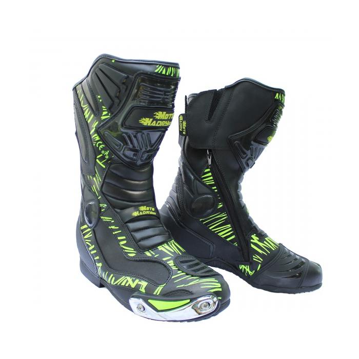 Motocyklová bota s flexibilním panelem v oblasti nártu, plastovým sliderem na špičce boty, prodyšné, vodě odolné, reflexní prvky, protiskluzová podrážka, zapínání zipem s překrytím suchým zipem pro lepší odolnost proti vodě, vyztužená pata. Zvýšená výztuha kotníků a holení části.