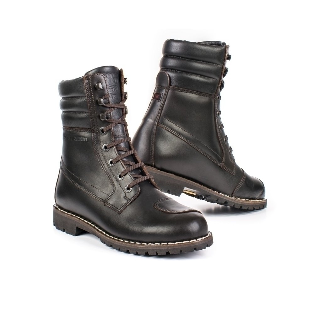 Stylové boty YU'ROK Vás nadchnou klasickým designem, který pochází z rukou italských návrhářů. Jde o nesmírně komfortní obuv, která Vás nezklame na motorce i mimo ni. Jemné polstrování v horní části bot zajistí, že bota nedře do nohy a je velmi pohodlná. Boty jsou vyrobeny z prvotřídní kůže, která je šetrně barvena. Způsob barvení ovlivňuje i pozdější chování této kůže, bota bude čase získávat patinu a tím jedinečný vzhled. K obuvi jsou přiloženy dva páry tkaniček v různých barvách (červená a hnědá). Další výhodou je klimatická membrána, která Vás nezklame ani v nepříznivém počasí, ale zároveň je prodyšná a tak je bota pohodlná i v teplém počasí.