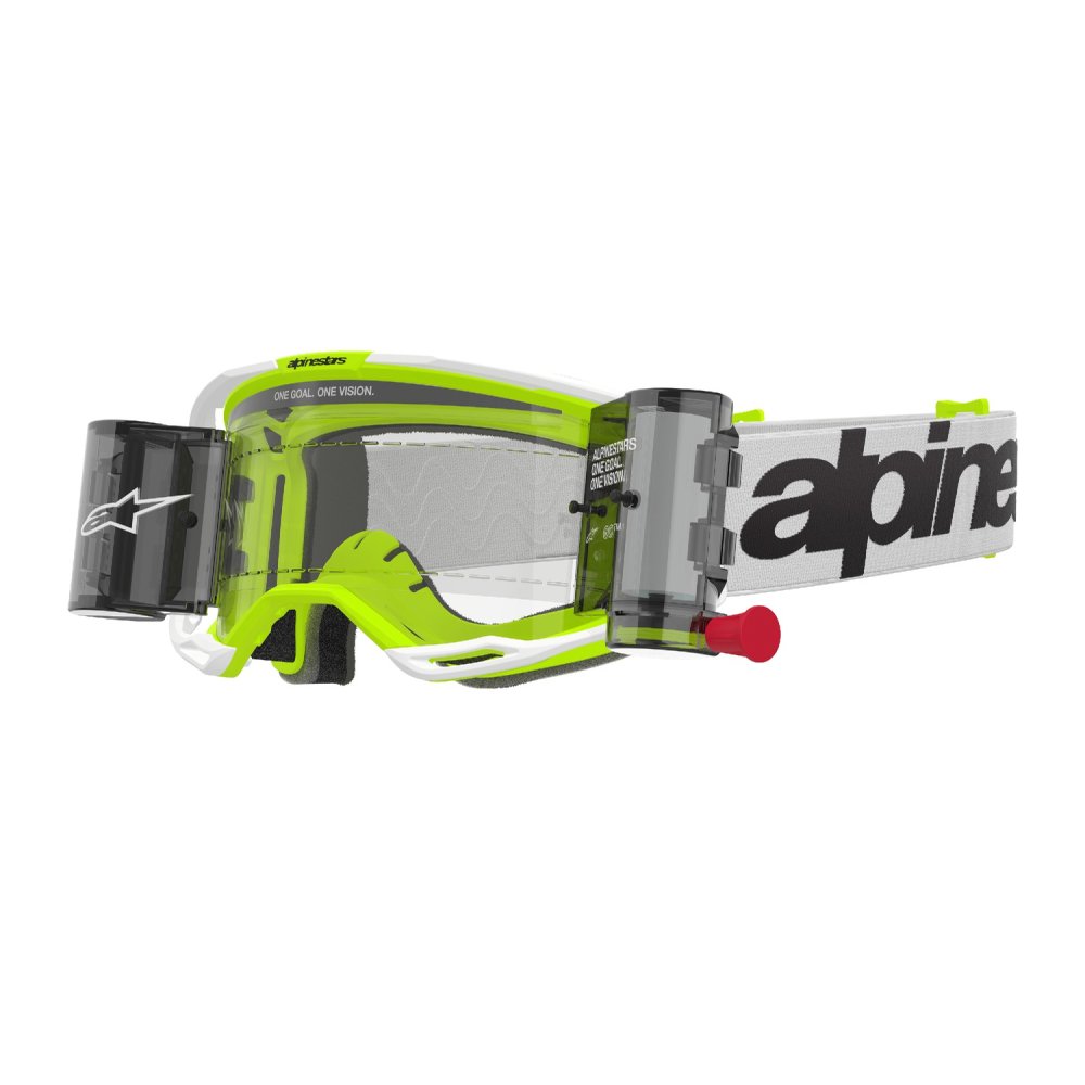 Provedení s ROLL-OFF systémem obsahuje specifické plexi, dvě cívky, stěrku a kryty systému ALPINESTARS ROLL-OFF WIDE VISION. Všechny plexi mají 100% UVA ochranu. Plexisklo systému ROLL-OFF obsahuje drážky pro vedení filmu lemované silikonovým těsněním. Úhel výhledu mezi krytkami systému ROLL-OFF WIDE VISION poskytuje více než 160 mm šírky, což je největší šířka na trhu s MX brýlemi.