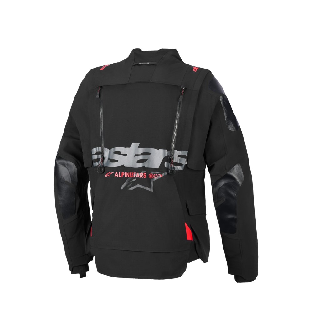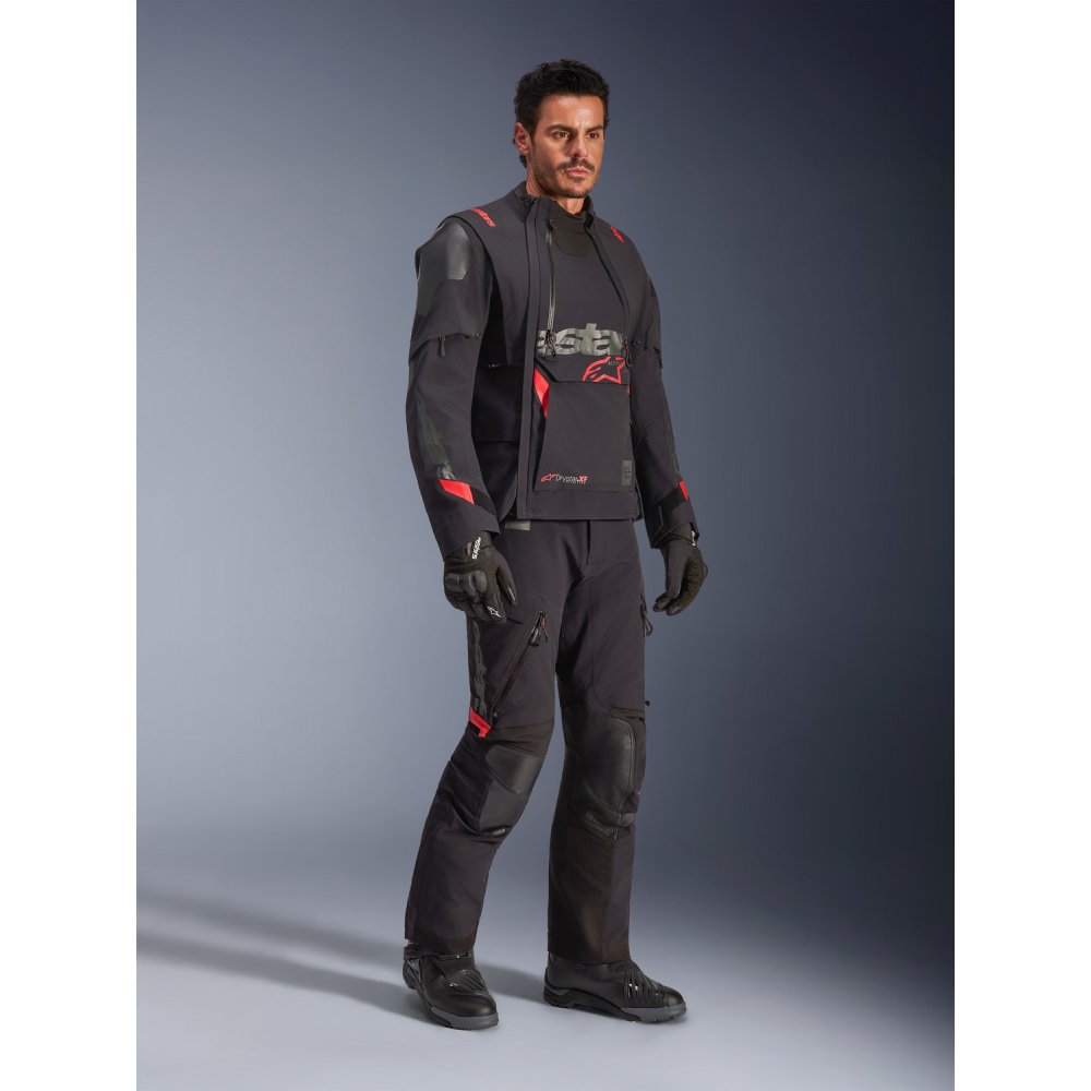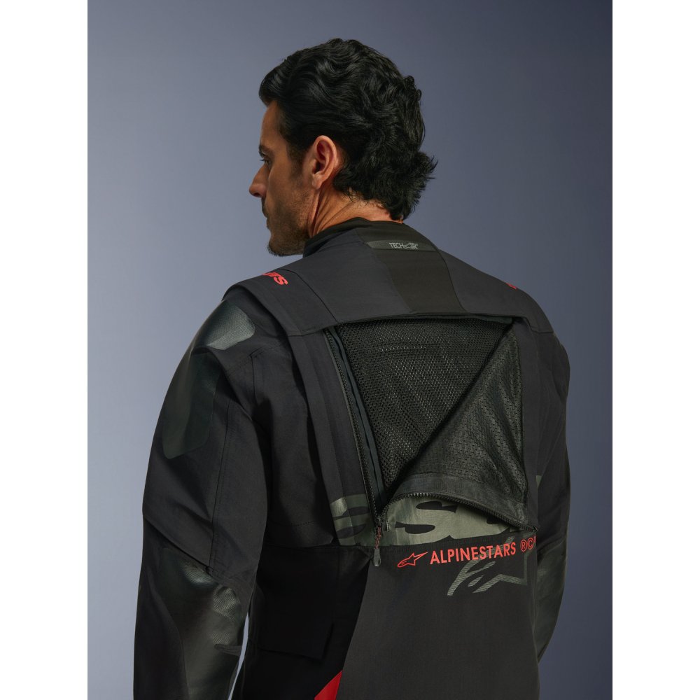 - Modulární konstrukce bundy poskytuje maximální komfort s ventilacemi systému přímé ventilace vysoké efektivity v kombinaci s velkými síťovinovými panely v oblasti hrudi a zad i odnímatelnými rukávy pod kterými je pevná síťovaná podšívka s integrovanými protektory loktů a ramen. Jednoduchým rozepnutím voděodolných zipů YKK® AQUASEAL® na hrudi, zádech lze srolovat a skrýt vnější laminovanou vrstvu společně s odepnutými rukávy, které lze skrýt do přední nebo zadní cestovní kapsy, batohu či zavazadel motocyklu.