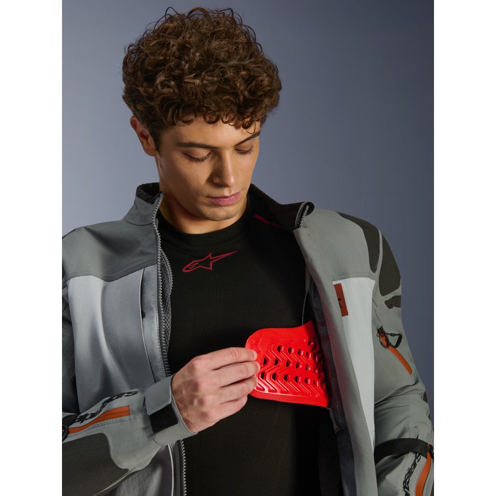Bunda NAZCA GORE-TEX PRO z cestovní kolekce ALPINESTARS ALL TERRA je navržena pro náročné jízdy na cestovním enduru. Vysoká trvanlivost, odolnost proti oděru a adaptace na různorodé klimatické podmínky. Bundu NAZCA je možné snadno a rychle adaptovat na nejextrémnější terénní podmínky. Obšívka z třívrstvé, laminované textilie s integrovanou klimatickou membránou GORE-TEX PRO, zesílení v podobě oděruodolných panelů z kompozitní textilie Superfabric®, velké vstupy ventilací a ventilační panel v podobě adaptéru hlavního zipu. Bunda disponuje ergonomií s minimalistickým interierem a pokročilým systémem 4 pozic nastavené objemu bundy díky kterým poskytuje přizpůsobení střihu na míru a vysokou volnost pohybu současně. Bunda obsahuje extra pružné a prodyšné odnímatelné protektoru loktů a ramen NUCLEON PLASMA PRO stupeň 2 a je střihově přizpůsobena pro použití airbagových vest TECH-AIR®.