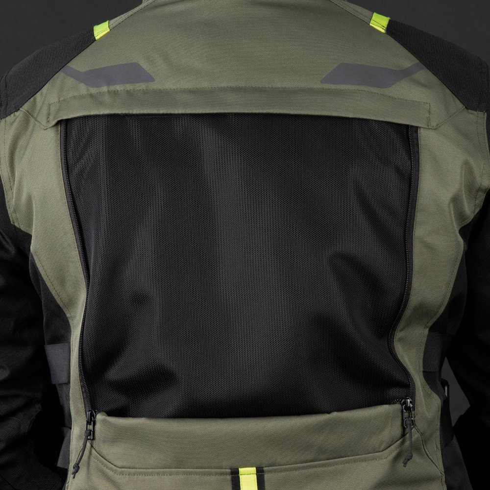 Systém velkých ventilačních panelů na hrudi, pod rameny a v zadní části.