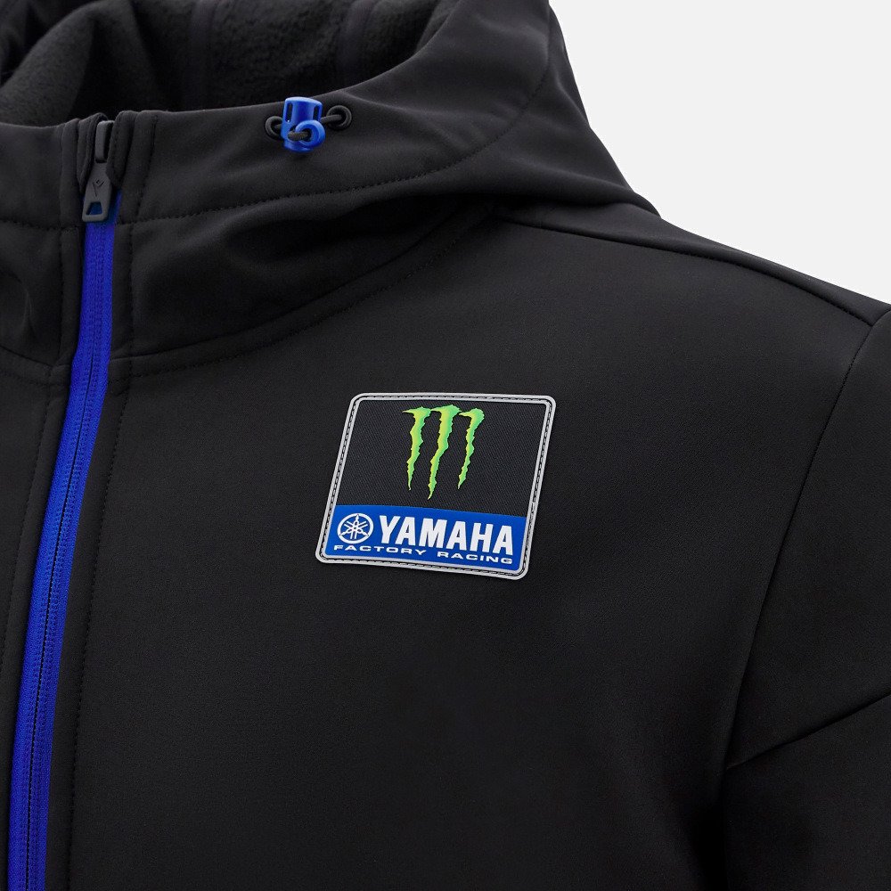 pánská bunda Yamaha Racing s logem týmu MotoGP na přední straně. Vyrobena z nepromokavé softshellové tkaniny. Má praktickou kapuci s elastickou stahovací šňůrkou a dvě boční kapsy na zip