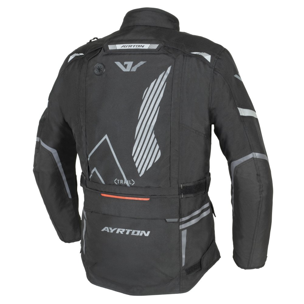 Dlouhá, cestovní, textilní bunda TRAIL disponuje CE certifikovanými protektory LITE PRO, které jsou pružné, lehké, prodyšné a díky malé tloušťce i nenápadné. Vnější polyester obšívka bundy se systémem ventilačních otvorů je doplněna o vnitřní odnímatelné vrstvy v podobě pláštěnky a termo vložky s plnivem z dutých vláken, která ochrání během chladného počasí. Krátký zip YKK® #8 umožňuje propojení bundy a kalhot.