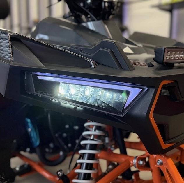 Čtyřkolka má hydraulické brzdy a páčky, které děti lehce zmáčknou a snadno zastaví. Taky můžeš postupně zvyšovat výkon nastavením rozsahu plynové páčky. Čtyřkolka má výtrhovou pojistku, pokud dítě spadne, stroj se vypne. Vybavili jsme ji LED diodovými světly, které skvěle posvítí na cestu a nejsou jen na oko. Zpětná zrcátka pro sledování ostatních jezdců v okolí. Digitální displej s ukazatelem rychlosti.