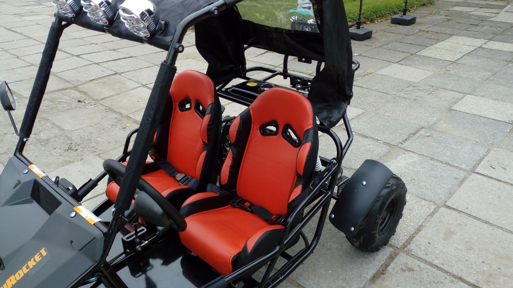 Skvělá bugyna pro děti v poměru cena / výkon. U této buggy byl použit kvalitní motor značky Zongshen, který oproti ostatním vyniká především svou spolehlivostí. Rovněž byl použit kvalitní bezpečnostní rám a bezpečnostní pásy pro maximální bezpečnost dítěte. Ve výbavě jsou také posuvné sedačky pro optimální nastavení vzdálenosti od pedálů.
