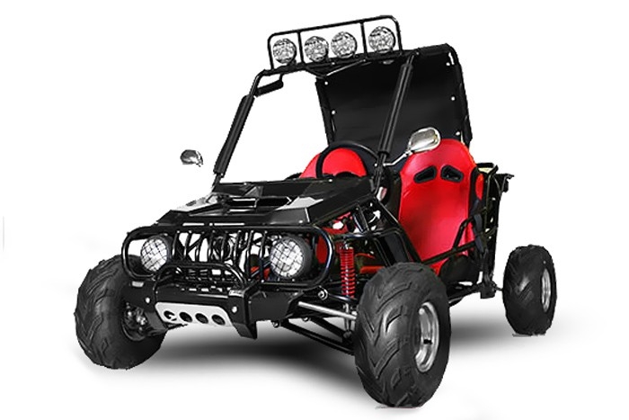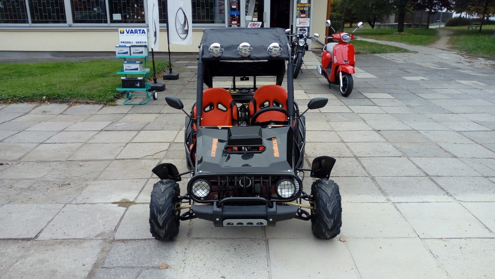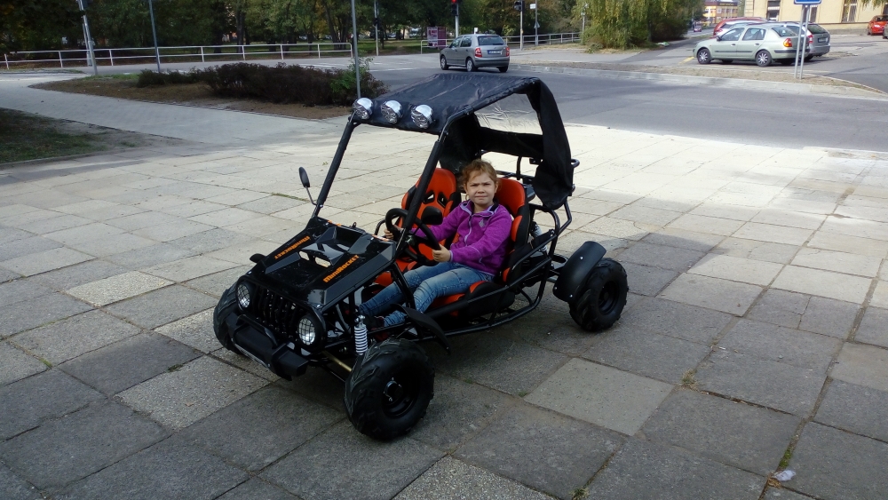 Dětská buggyna s obsahem motoru 125ccm. Převodovka může být poloautomatická se třemi rychlostmi vpřed a se zpátečkou nebo plný automat (volíte pouze vpřed nebo vzad).