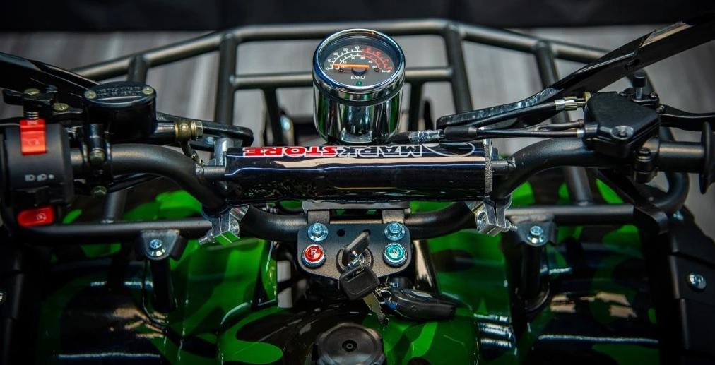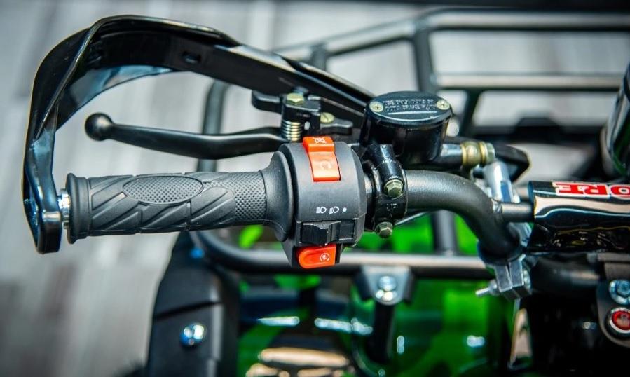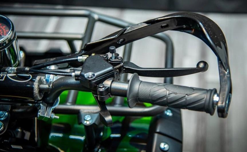 Tato čtyřkolka má přední brzdu mechanickou/lankovou a zadní brzdu kapalinovou/kotoučovou, které děti lehce zmáčknou a snadno zastaví. Taky můžeš postupně zvyšovat výkon nastavením rozsahu plynové páčky. Vybavili jsme ji LED diodovými světly, které skvěle posvítí na cestu a nejsou jen na oko. Zpětná zrcátka pro sledování ostatních jezdců v okolí. Analogový displej s ukazatelem rychlosti. Určitě doporučujeme přikoupit i dětskou helmu i vhodné oblečení.