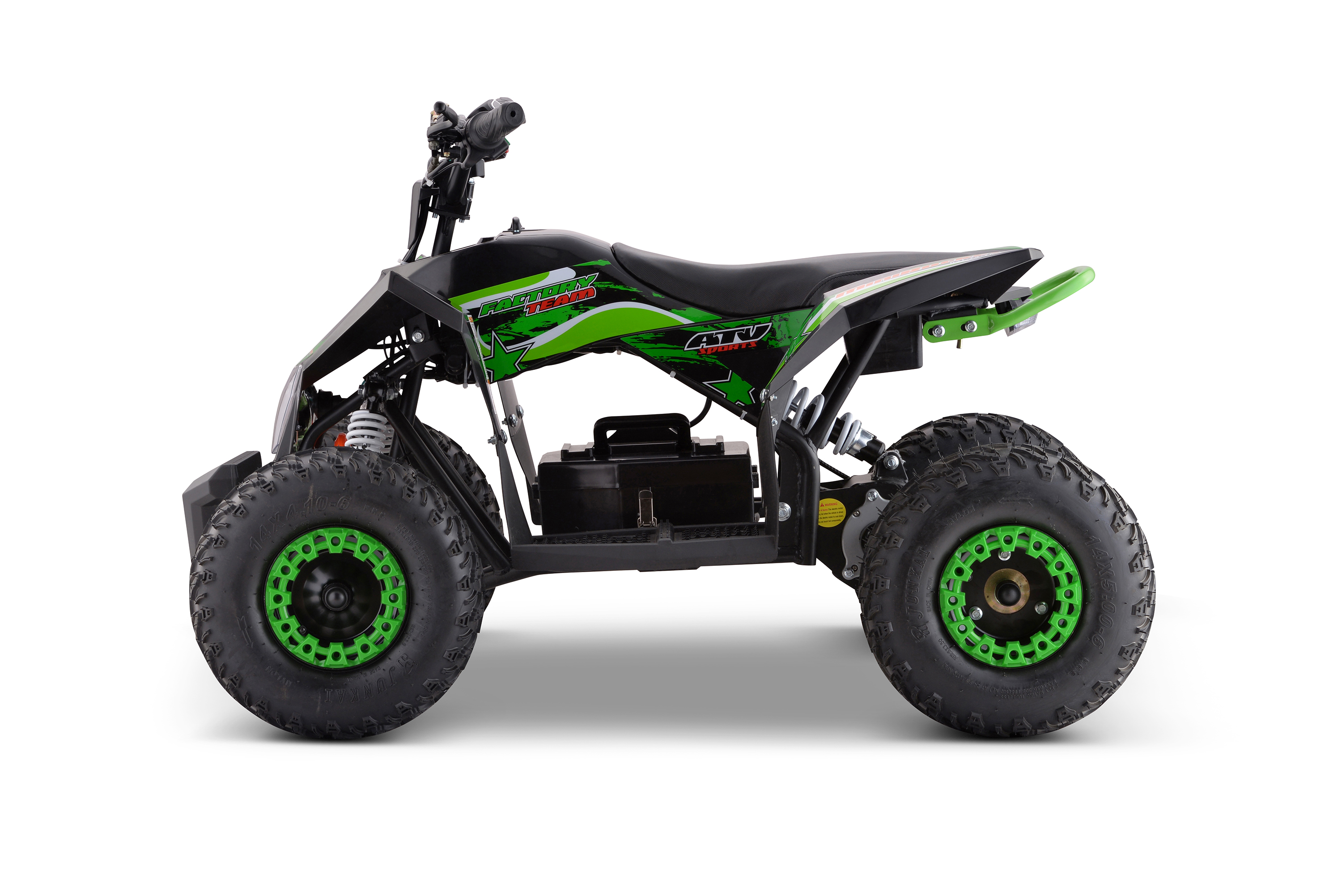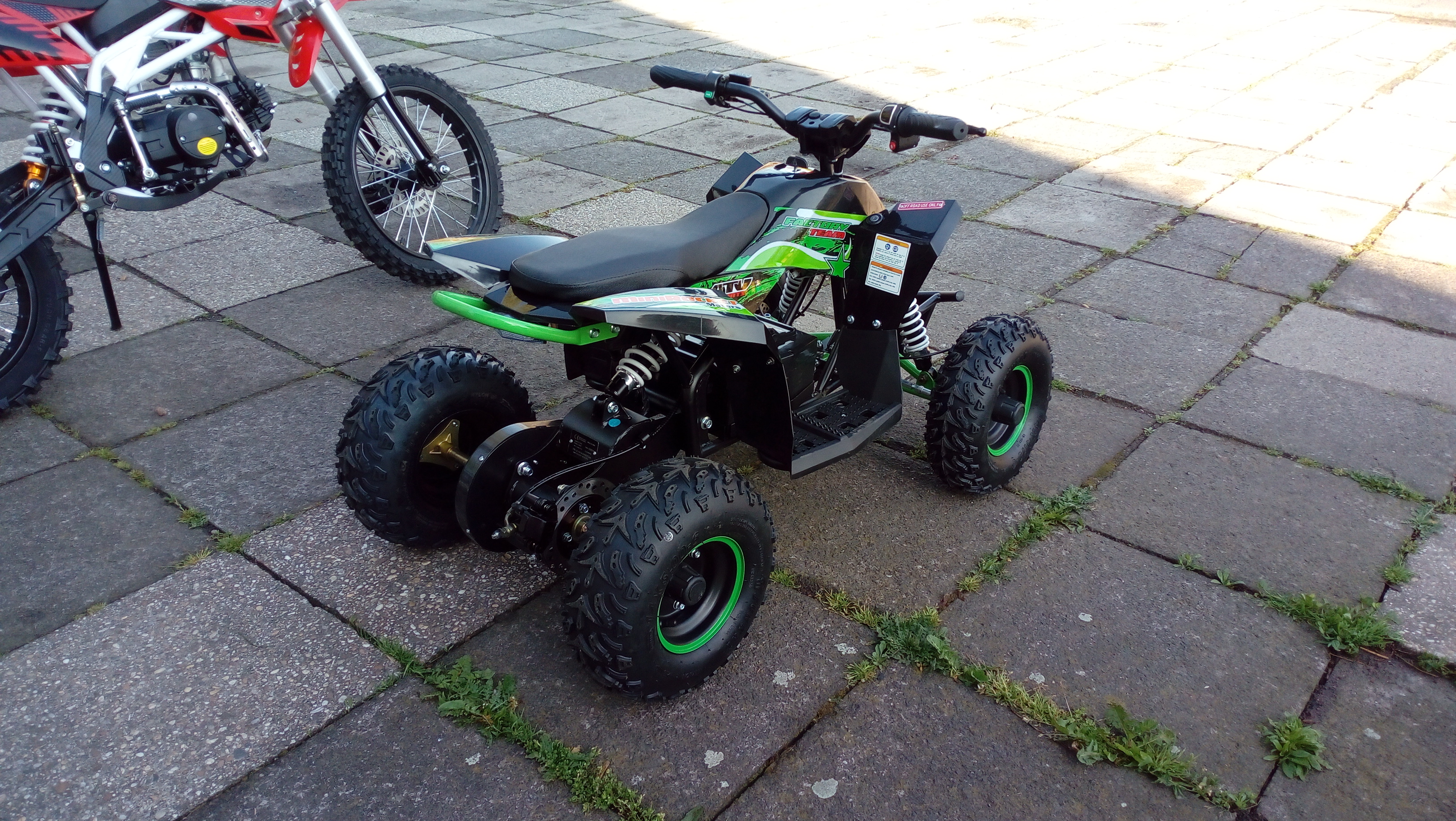 Čtyřkolka je osazena nejsilnějším motorem, který se dnes používá - 1000W elektromotorem, který je schopen čtyřkolku rozjet až na 30km/h. Lze nastavit rychlost stroje, reakci na plyn i sílu motoru.