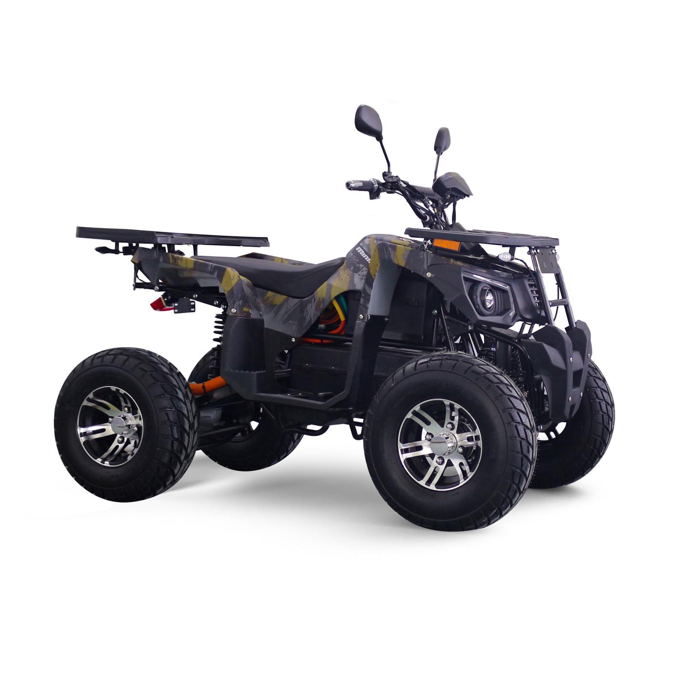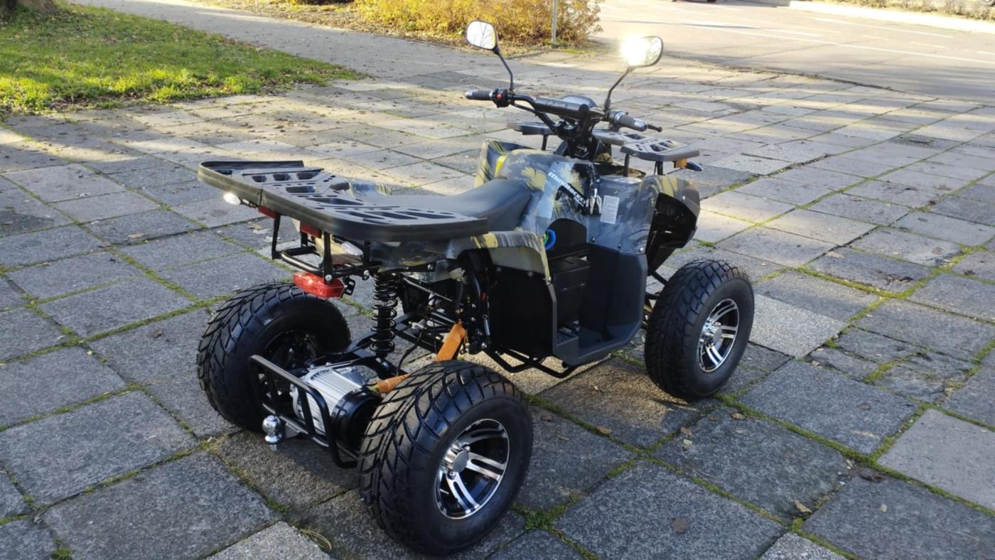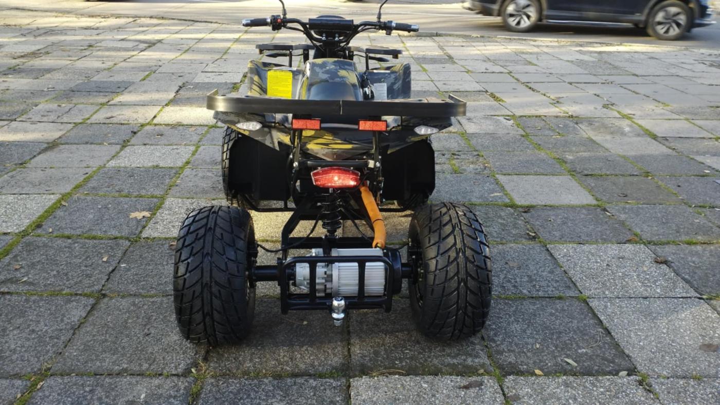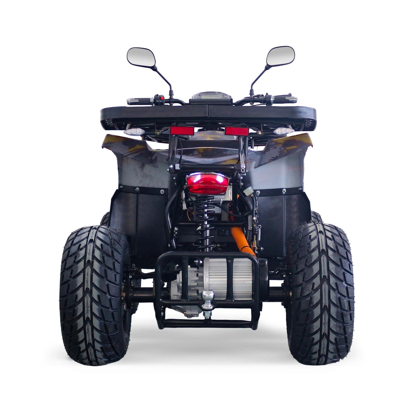 Čtyřkolka je vybavena předními bubnovými brzdy a zadními kapalinovými, kotoučovými brzdami. Přední bubnové brzdy jsou ovládány pákou na řídítku, zadní kotoučové kapalinové brzdy jsou ovládány pedálem, pravou nohou. Motor je osazen na zadní odpružené nápravě, převod z motoru na osu je pomocí uzavřené převodové skříně. Přední kola jsou na samostatně odpružených závěsných ramenech. Na propracovaných hliníkových ráfcích jsou osazeny velké pneumatiky s terénním dezénem zajišťujícím dokonalou trakci v terénu. Na řídítkách je upevněn digitální tachometr. Dravým vzhledem i akcelerací se stroj přibližuje „dospělým“ čtyřkolkám se spalovacím motorem. Zásadní výhodou je však naprosto tichý provoz bez emisí. Provozovat tedy lze i v místech, kde by hluk nebo zápach zplodin mohl okolí obtěžovat.