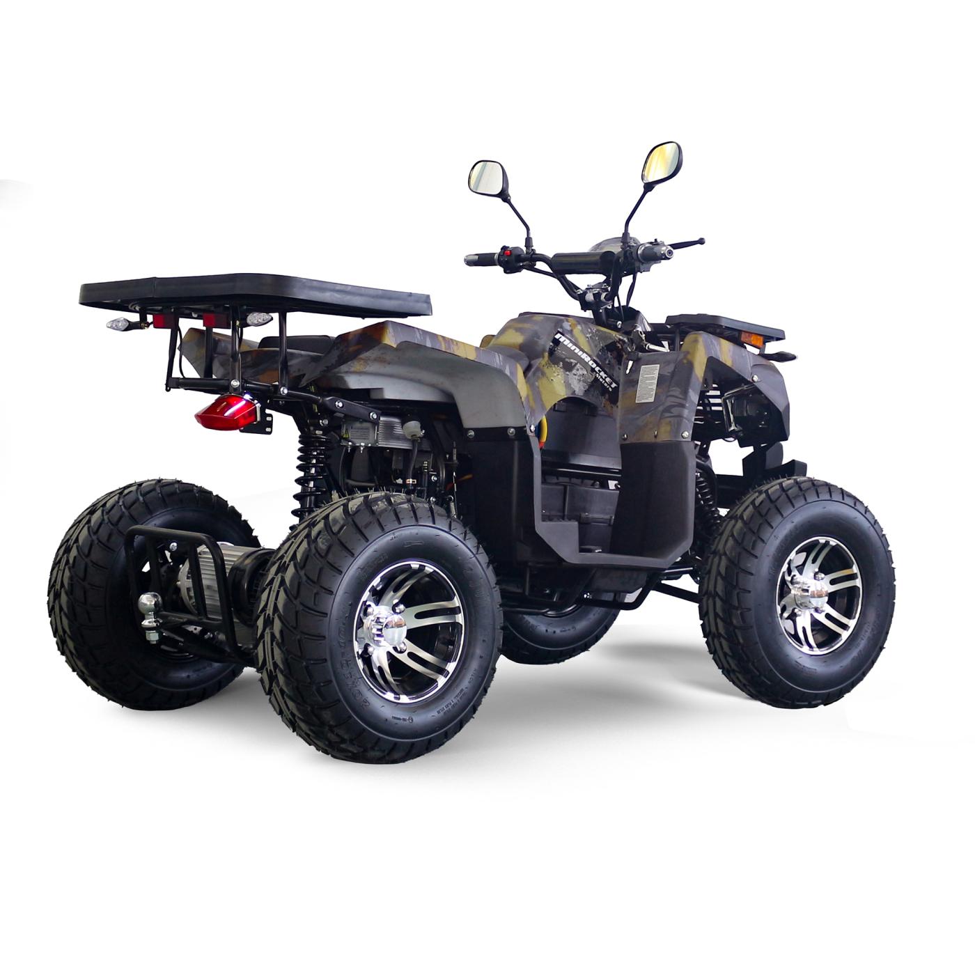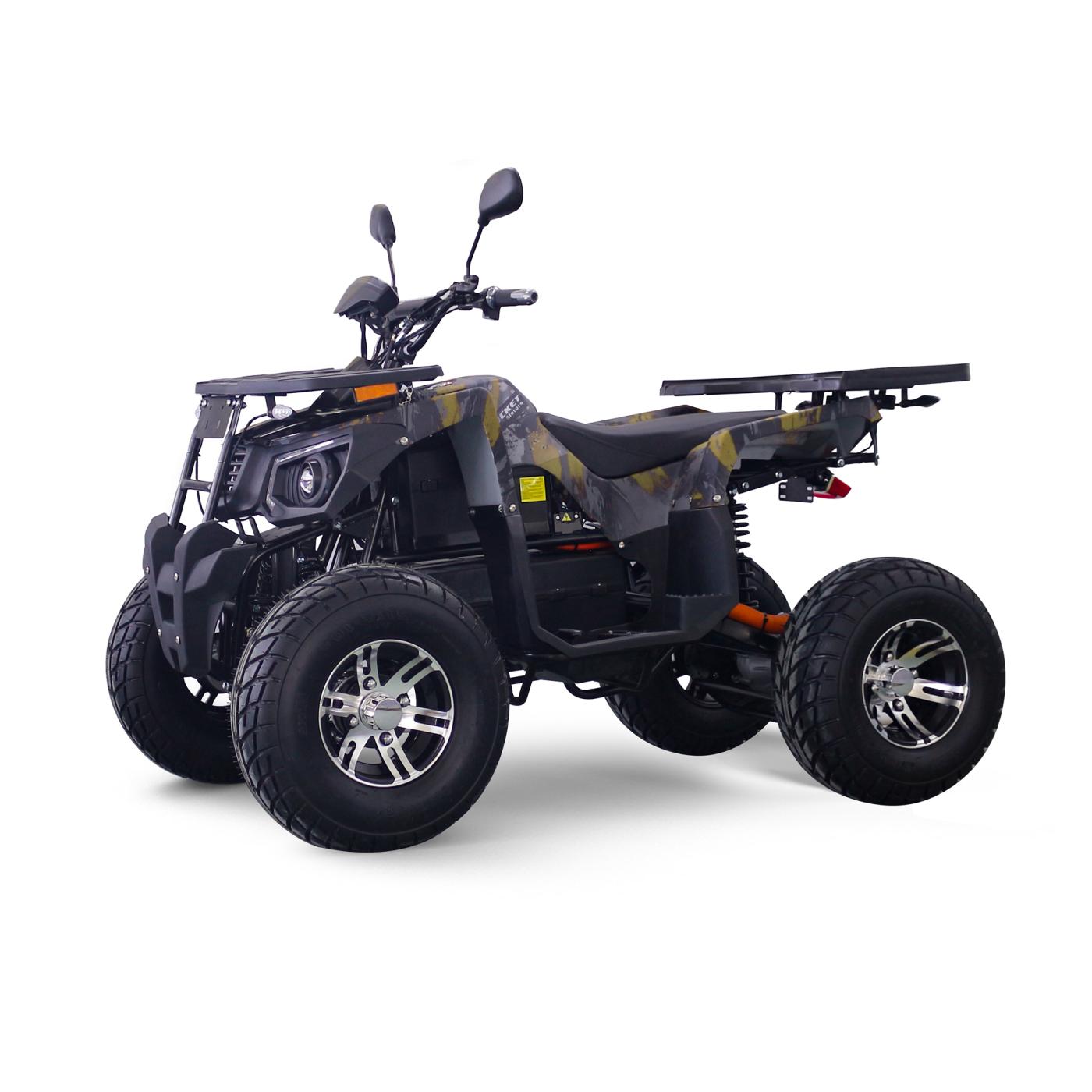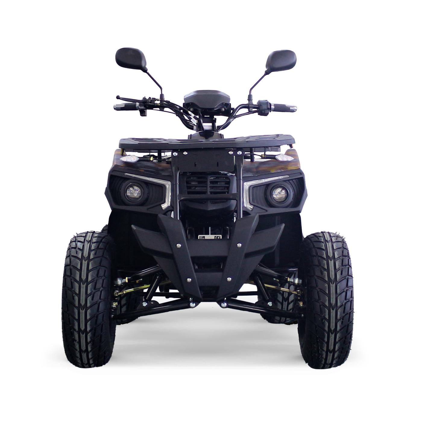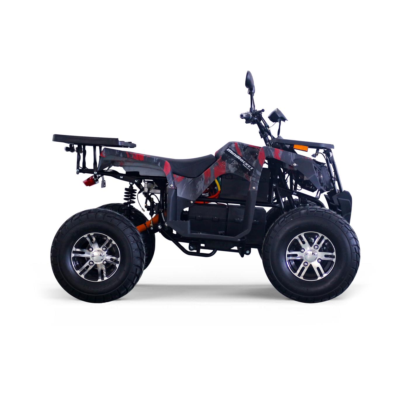 Čtyřkolka je vybavena předními bubnovými brzdy a zadními kapalinovými, kotoučovými brzdami. Přední bubnové brzdy jsou ovládány pákou na řídítku, zadní kotoučové kapalinové brzdy jsou ovládány pedálem, pravou nohou. Motor je osazen na zadní odpružené nápravě, převod z motoru na osu je pomocí uzavřené převodové skříně. Přední kola jsou na samostatně odpružených závěsných ramenech. Na propracovaných hliníkových ráfcích jsou osazeny velké pneumatiky s terénním dezénem zajišťujícím dokonalou trakci v terénu. Na řídítkách je upevněn digitální tachometr. Dravým vzhledem i akcelerací se stroj přibližuje „dospělým“ čtyřkolkám se spalovacím motorem. Zásadní výhodou je však naprosto tichý provoz bez emisí. Provozovat tedy lze i v místech, kde by hluk nebo zápach zplodin mohl okolí obtěžovat.