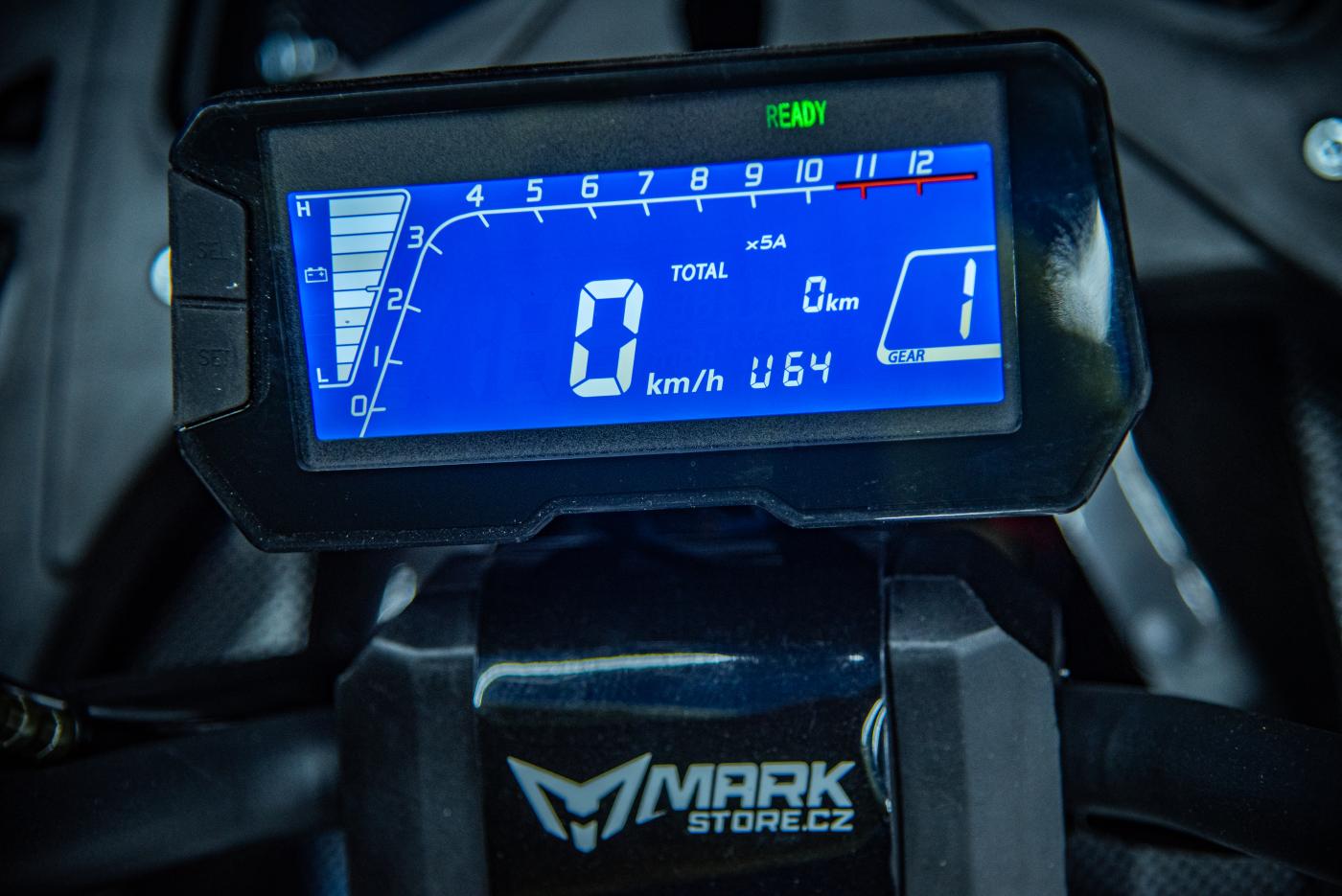 - Moderní velký LED display s informací o rychlosti, stavu nabití