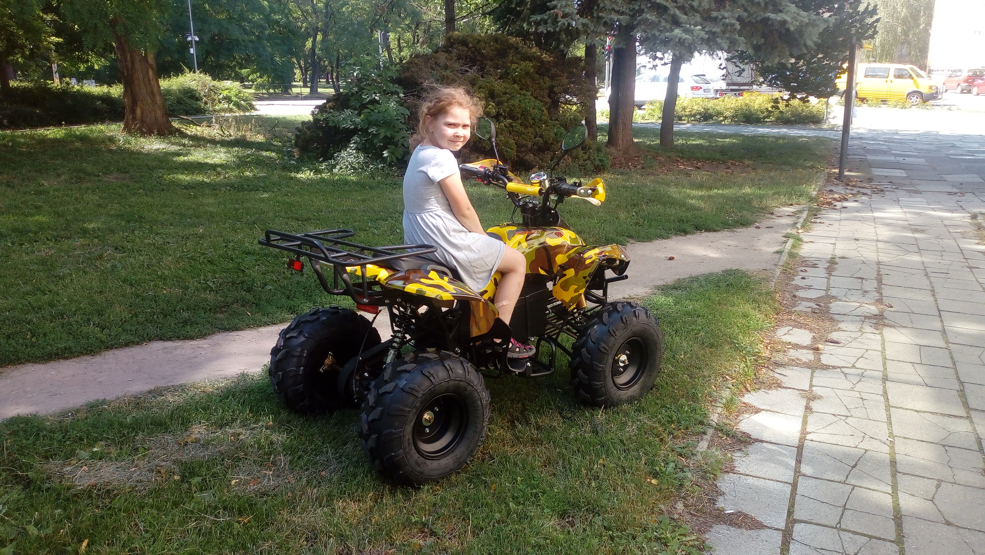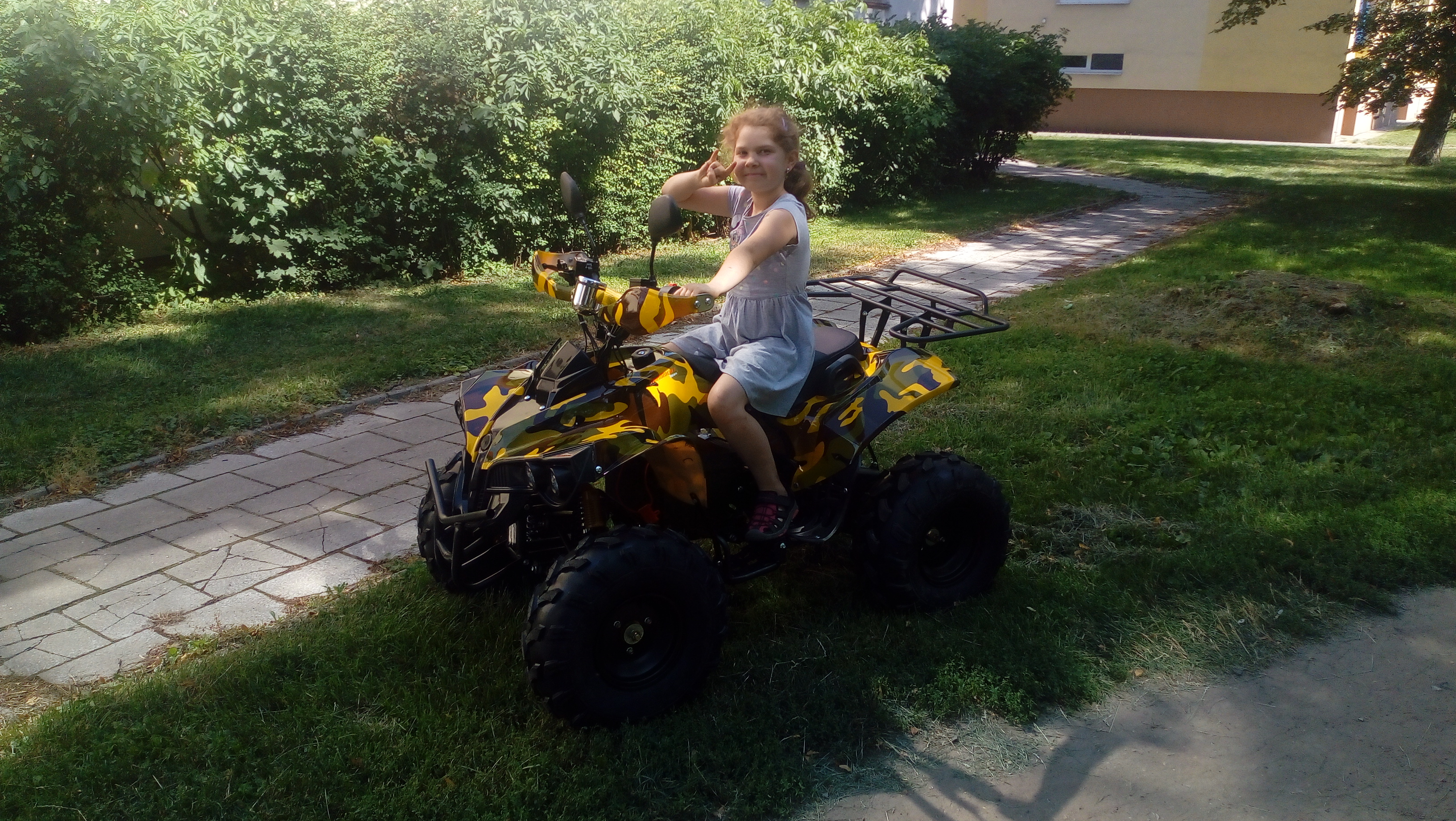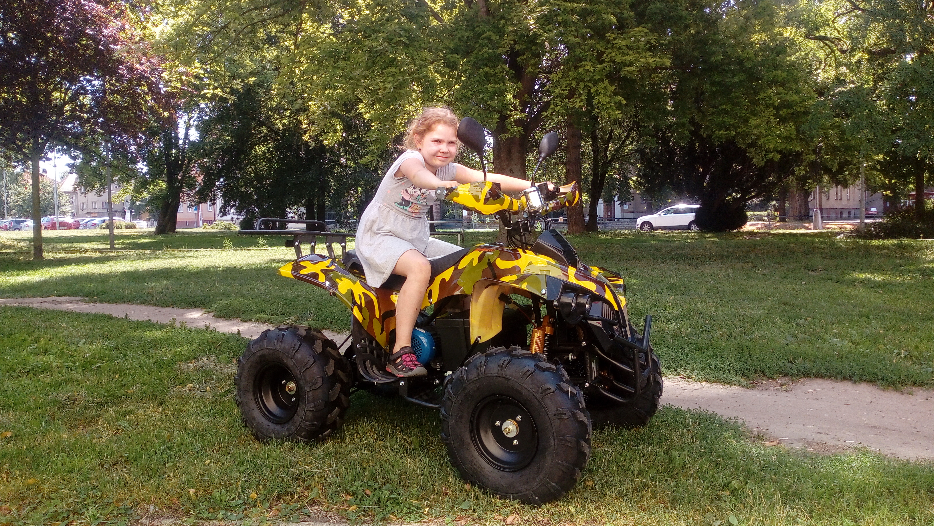 - Díky tichému a ekologickému elektromotoru, můžete na čtyřkolce jezdit téměř kdekoli např. jít s dětmi na procházku do parku, kam z benzínovou čtyřkolku nemůžete