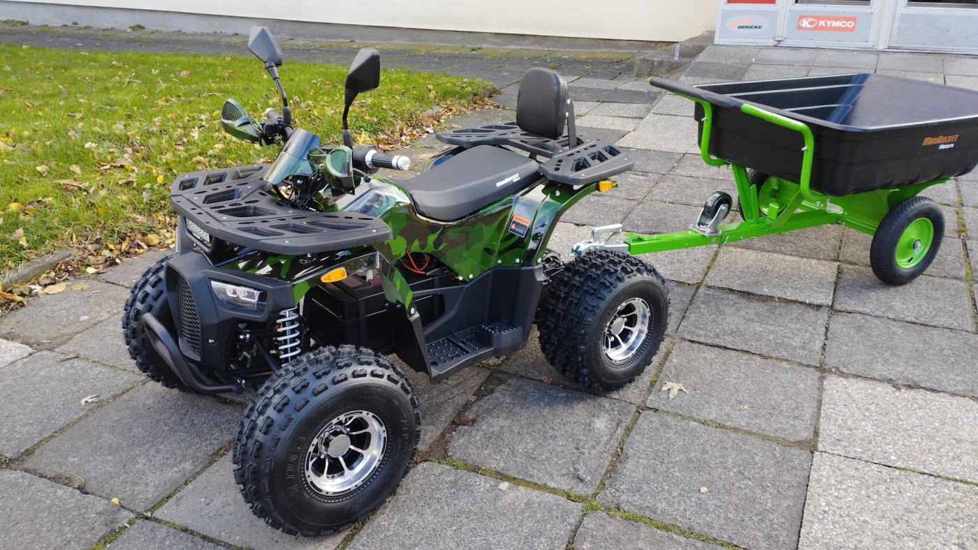 Na fotkách s vozíkem je čtyřkolka s vozíkem Gardener, který nalezenete také v naší nabídce.