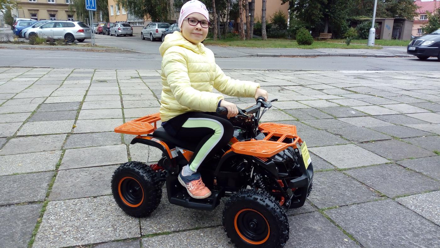 Na fotkách je s podobnou čtyřkolkou 10-ti letá slečna s výškou 135cm! Čtyřkolka je na ni už malá, nepoužitelná...