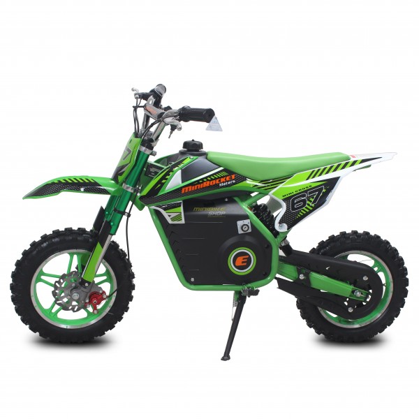 Motorka je vybavena motorem o výkonu 1000W 36V. Jedná se o velice kvalitní zpracování, kde jsou pečlivě zakryty baterie, motor i řetěz. Samozřejmostí je tří stupňový regulátor rychlostí, díky kterému je možné si nastavit maximální rychlost: 7/15/25Km/h. Minicross je také vybaven indikátorem stavu bateríí, přední a zadní odpruženou vidlicí a přední a zadní kotoučovou brzdou.