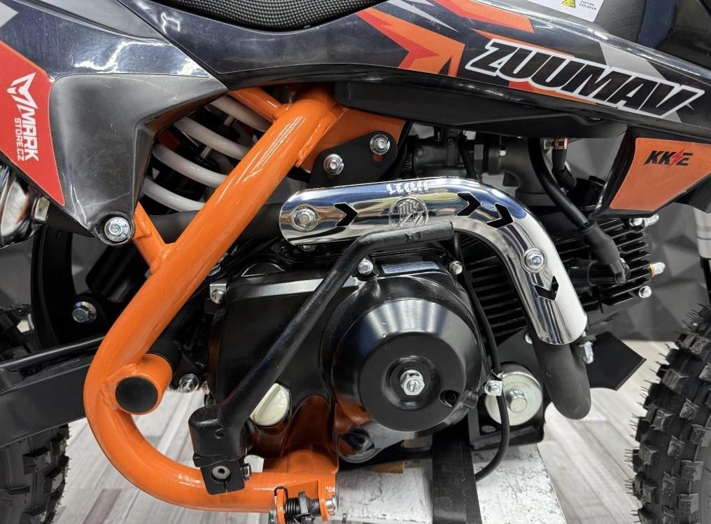 Se svými většími sourozenci sdílí tato motorka mnohé - velice kvalitní přední vidlice (hydraulické), přední i zadní hydraulická brzda, motokrosová kola, kvalitní výfuk, kvalitní polepy a mnoho dalšího. Tento pitbike je vyroben ze součástek vysoké kvality.