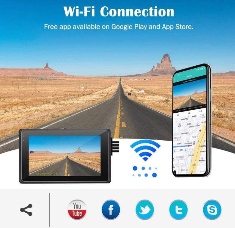 Díky možnosti WiFi připojení je možné se k systému připojit přes mobilní telefon se systémem Android a iOS. Záběry kamer tak lze sledovat online přímo na telefonu, můžete také ihned pořídit záznam jízdy a ten během několika okamžiků sdílet.