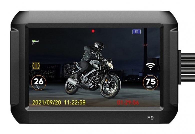 Duální kamerový systém na motocykl Secutek F9-TPMS je navržen speciálně pro motorky a čtyřkolky. Disponuje velkým 4'' displejem, který lze díky držáku snadno namontovat na řídítka a monitorovat dění před i za motorkou. Záběry z obou kamer lze na displeji zobrazit vedle sebe nebo vždy jednu v režimu celé obrazovky, což umožňuje použití tohoto systému i jako couvací či parkovací kamery.