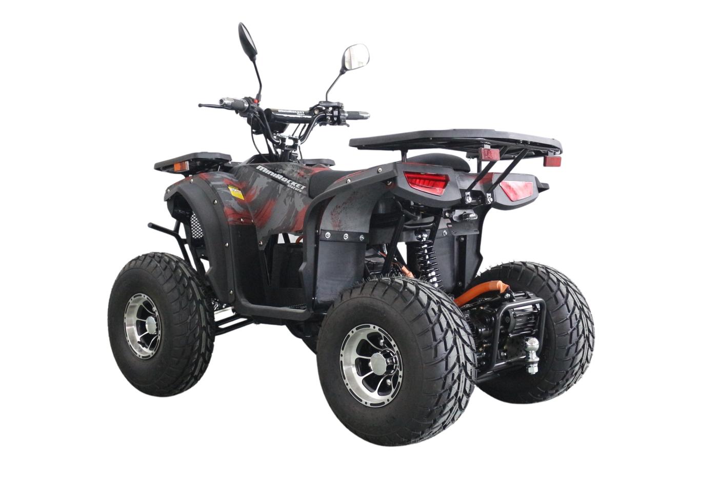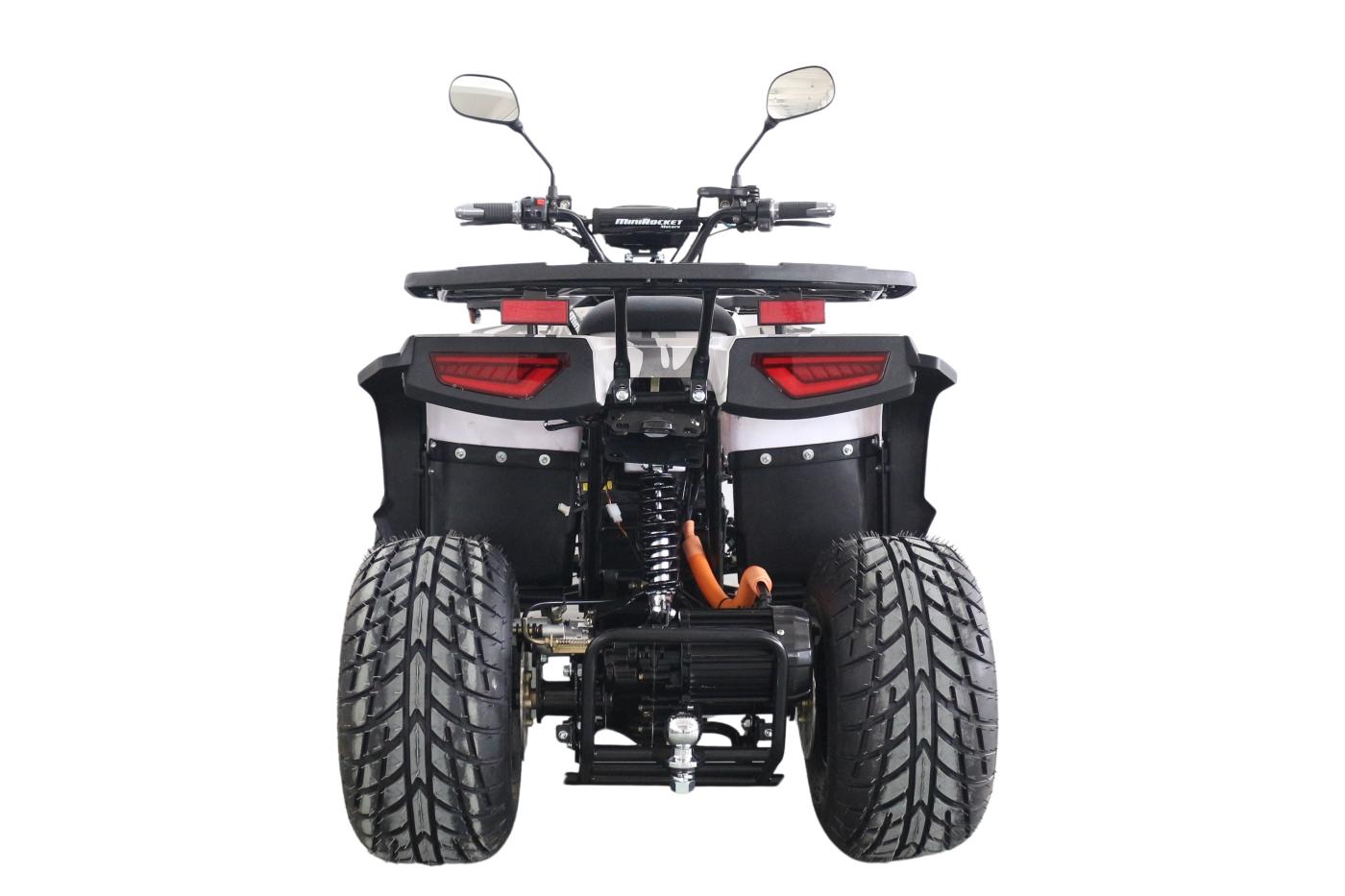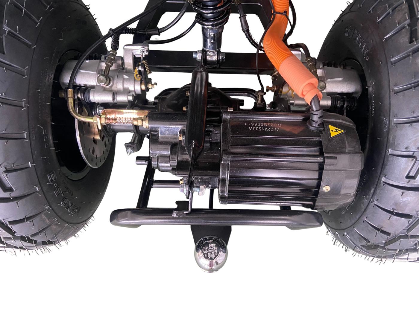 Čtyřkolka je vybavena kapalinovými, kotoučovými brzdami. Motor je osazen na zadní odpružené nápravě, převod z motoru na osu je pomocí uzavřené převodové skříně. Přední kola jsou na samostatně odpružených závěsných ramenech. Na řídítkách je upevněn digitální tachometr. Dravým vzhledem i akcelerací se stroj přibližuje „dospělým“ čtyřkolkám se spalovacím motorem. Zásadní výhodou je však naprosto tichý provoz bez emisí. Provozovat tedy lze i v místech, kde by hluk nebo zápach zplodin mohl okolí obtěžovat.