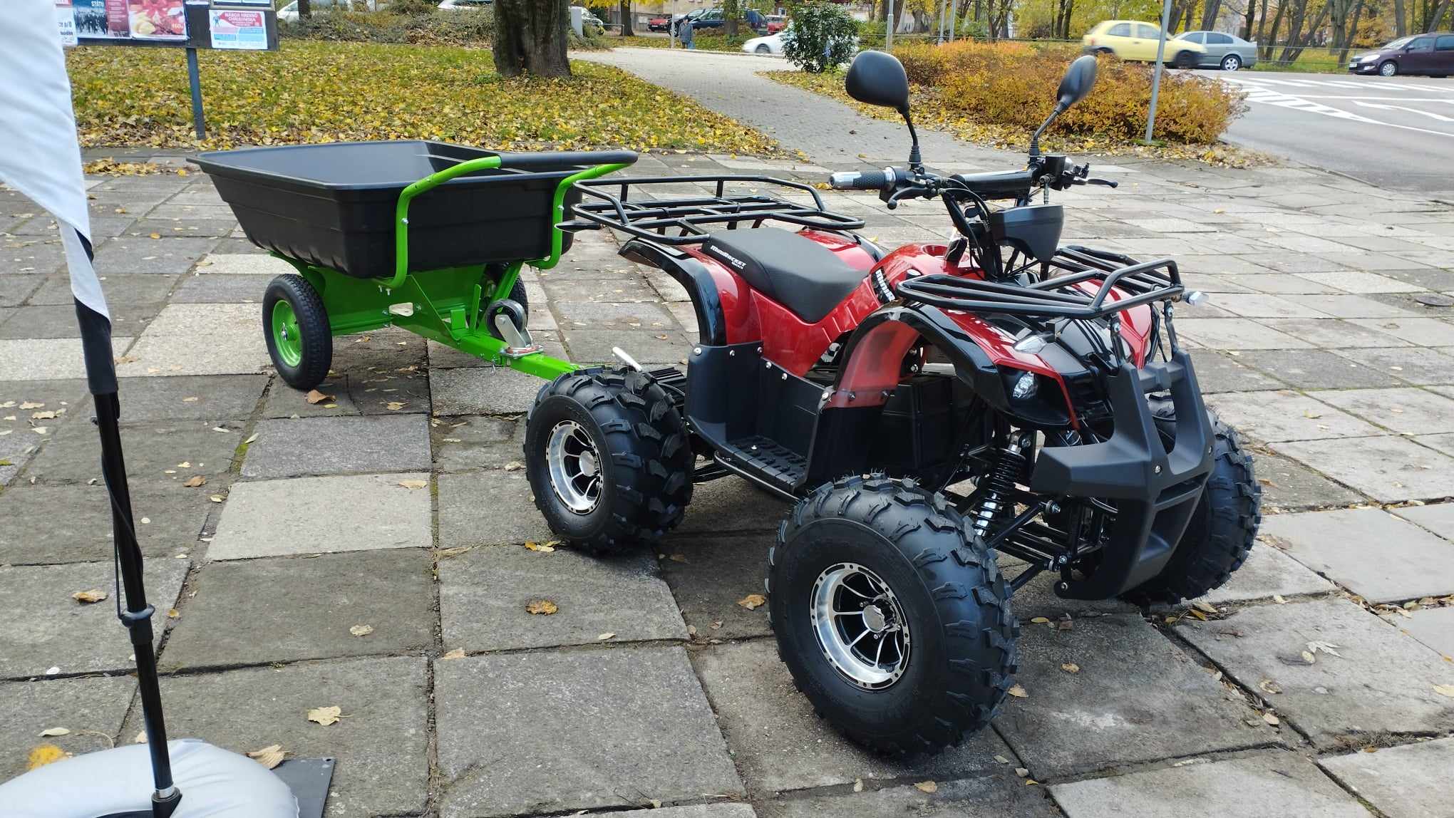 Čtyřkolka je vybavena tažným zařízením (koulí).