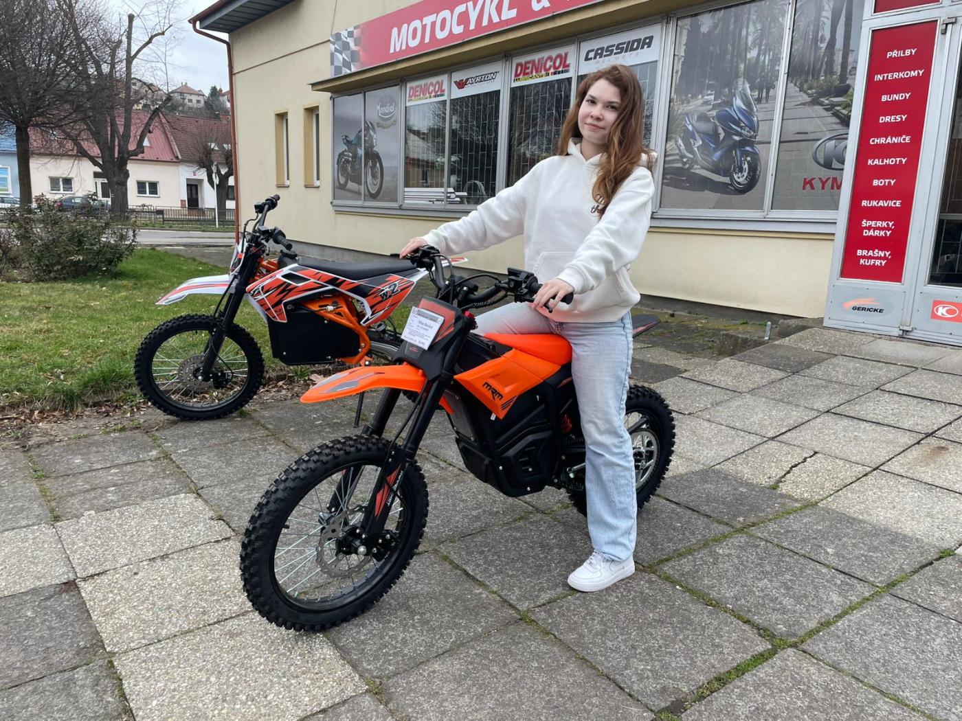 Na tohle jsme všichni čekali! Konečně něco pro děti s výškou okolo 145cm, co nestojí 100 tisíc! Opravdu nádherné zpracování, vše funkční, lehounký a "tenoučký" stroj. Super manévrovatelnost, špičkové brzdy a ten motor! Baterie! Tohle se povedlo! Stroj je vhodný pro děti cca od 12-ti let, chce to kolem 145cm, aby dítě dosáhlo na zem...samozřejmě se vyřádí i tatínci! Motorka má tři jízdní režimy(omezovač).