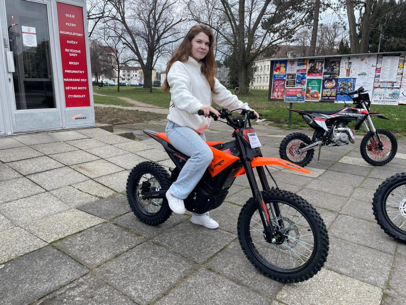 Na tohle jsme všichni čekali! Konečně něco pro děti s výškou okolo 145cm, co nestojí 100 tisíc! Opravdu nádherné zpracování, vše funkční, lehounký a "tenoučký" stroj. Super manévrovatelnost, špičkové brzdy a ten motor! Baterie! Tohle se povedlo! Stroj je vhodný pro děti cca od 12-ti let, chce to kolem 145cm, aby dítě dosáhlo na zem...samozřejmě se vyřádí i tatínci! Motorka má tři jízdní režimy(omezovač).