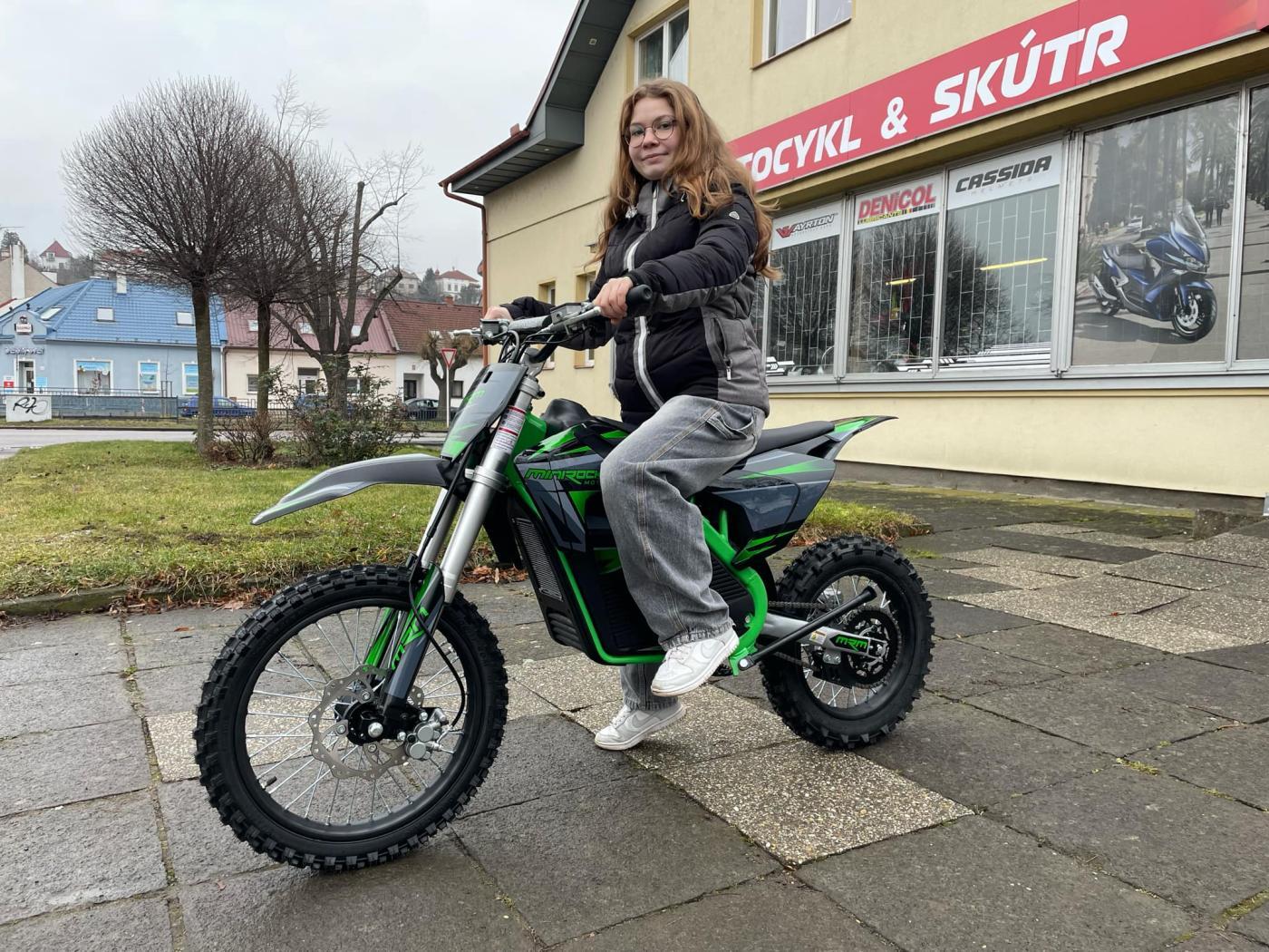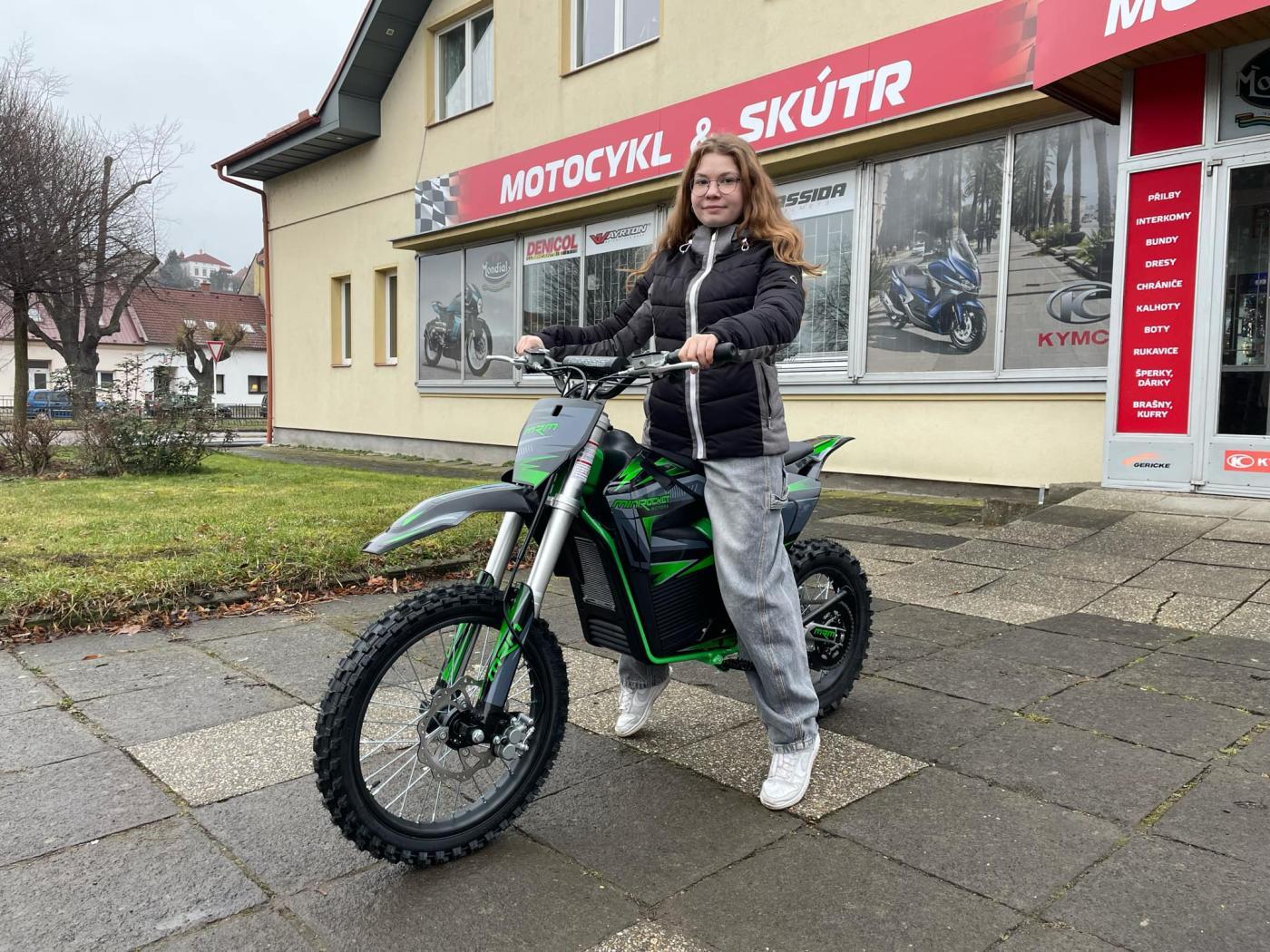 Na tohle jsme všichni čekali! Konečně něco pro děti s výškou okolo 145cm, co nestojí 100 tisíc! Opravdu nádherné zpracování, vše funkční, lehounký a "tenoučký" stroj. Super manévrovatelnost, špičkové brzdy a ten motor! Baterie! Tohle se povedlo! Stroj je vhodný pro děti cca od 12-ti let, chce to kolem 145cm, aby dítě dosáhlo na zem...samozřejmě se vyřádí i tatínci! Motorka má tři jízdní režimy(omezovač).