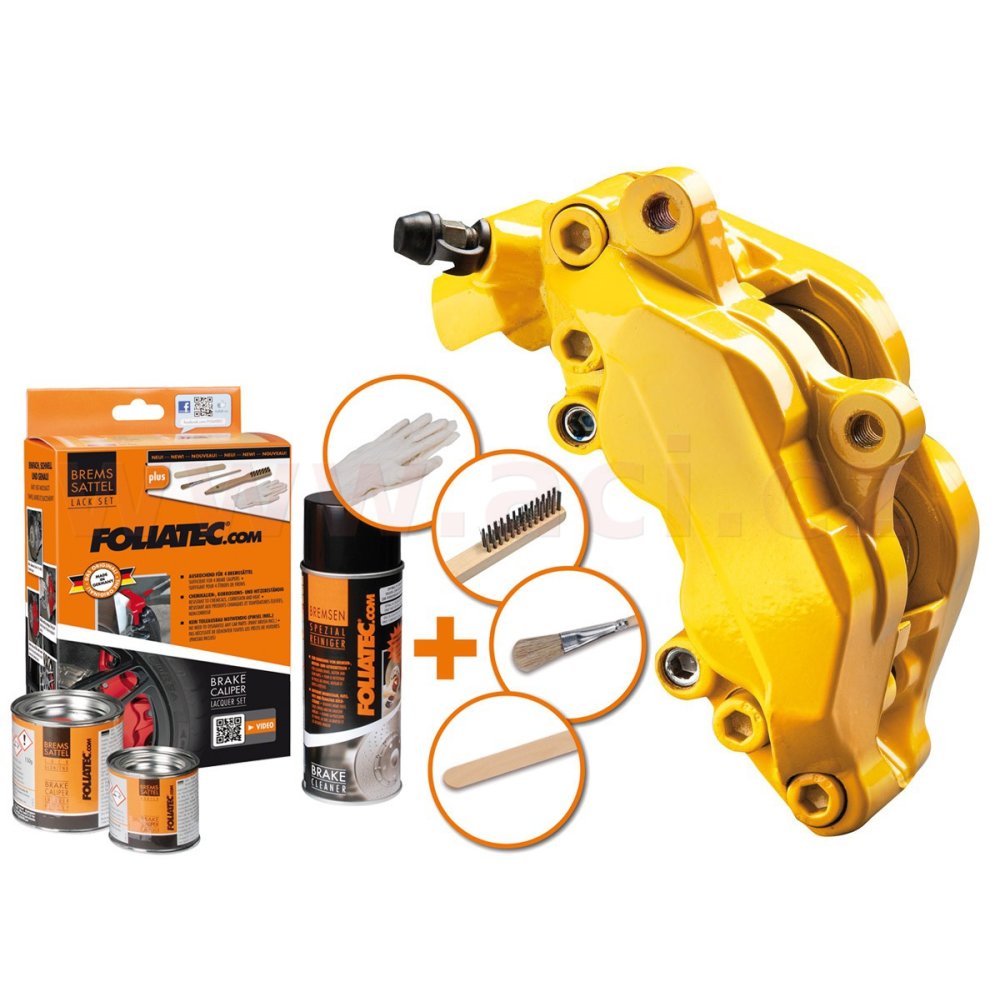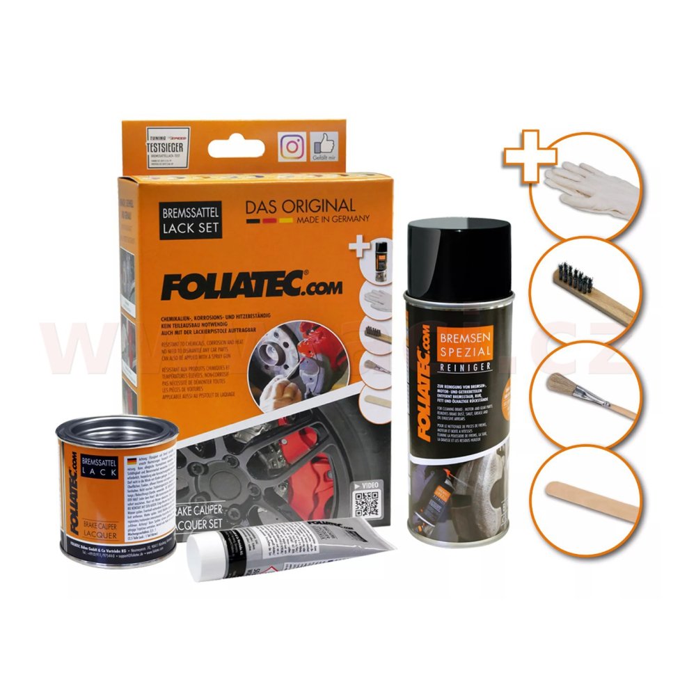 Pomocí barvy na brzdiče FOLIATEC může každý jednoduše změnit nevzhledný zašlý povrch brzdičů či bubnových brzd na zářivý doplňek podtrhující sportovní či elegantní charakter vozu. Z naší široké nabídky barev mezi které najdete barvy lesklé, matné, ale i metalické si vybere určitě každý. Díky odolnosti proti vysokým teplotám je možné barvu FOLIATEC použít také na motorové díly či jiné povrchy, které jsou namáhány vysokou teplotou.