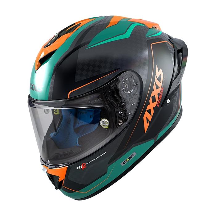helma na motorku Axxis Cobra Rage zelená/oranžová/carbon, Velikost XL