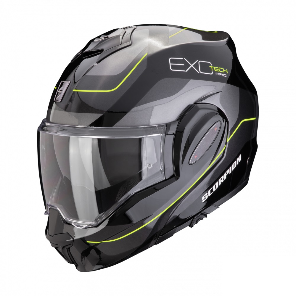 helma na motorku Scorpion EXO-Tech Evo Pro Commuta černo/stříbrno/žlutá, Velikost L