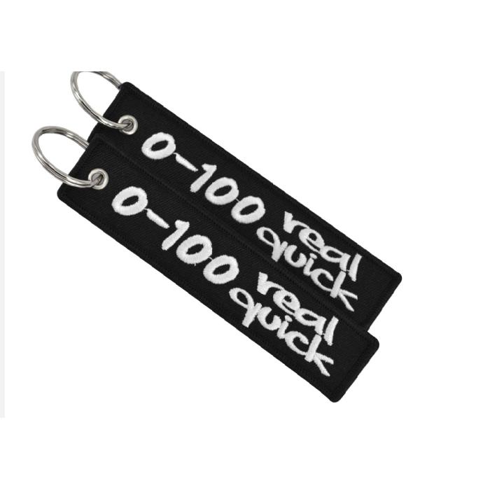 Textilní přívěšek na klíče o rozměru cca 12x3cm (0-100 real quick) - (0-100 opravdu rychle).