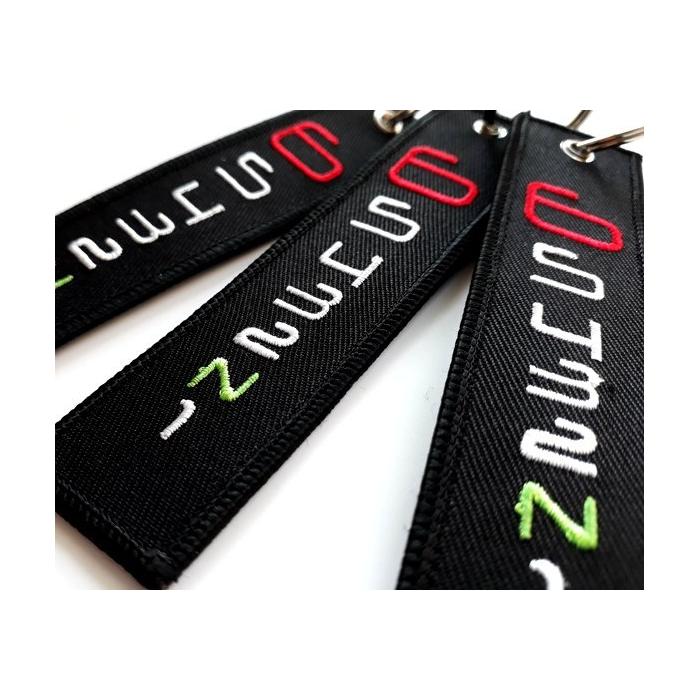 Látkový přívěšek na klíče o rozměru 12x3cm.