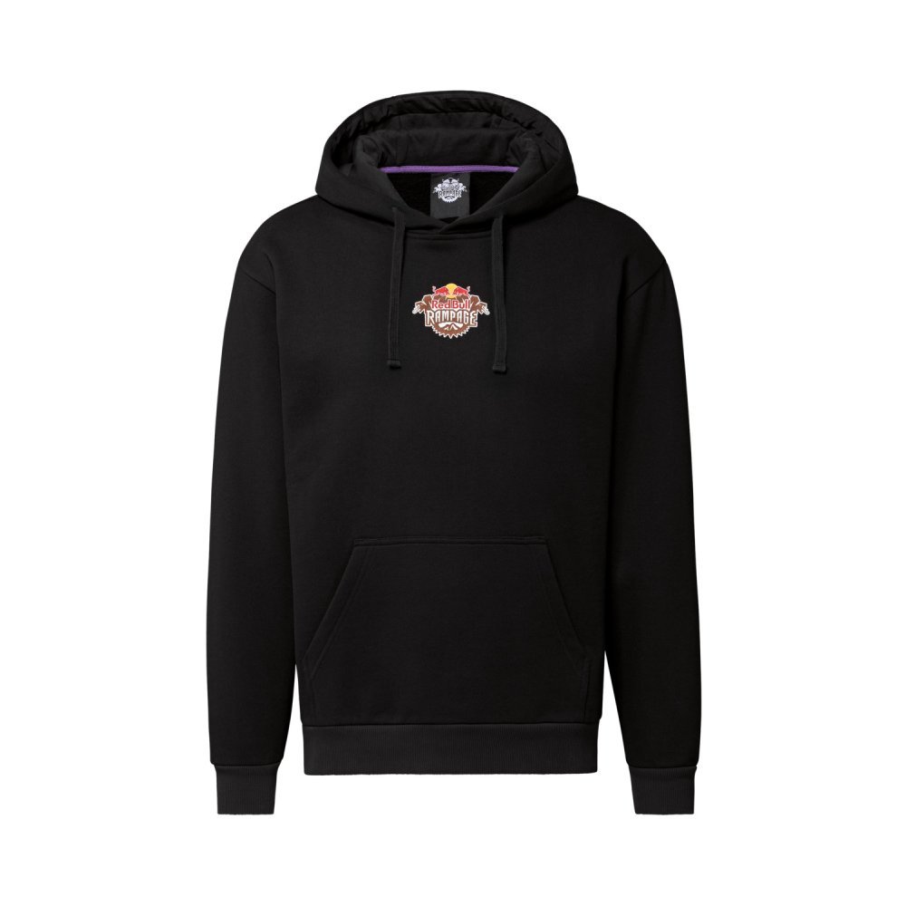pohodlná volnočasová mikina s kapucí Red Bull Rampage s velkým potiskem na zádech a menším potiskem na hrudi