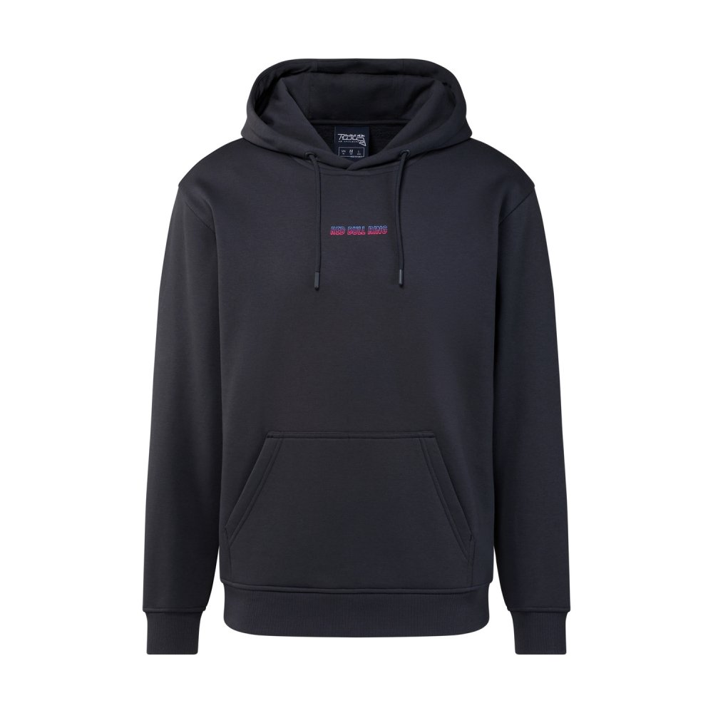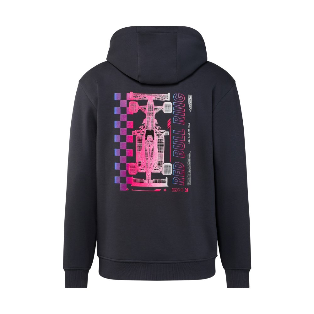 Vybavte se mikinou s kapucí Pit Stop. Přední stranu zdobí decentní logo Red Bull Ring, zatímco zadní strana se vyznačuje výrazným neonovým závodním vozem s kostkovanou grafikou