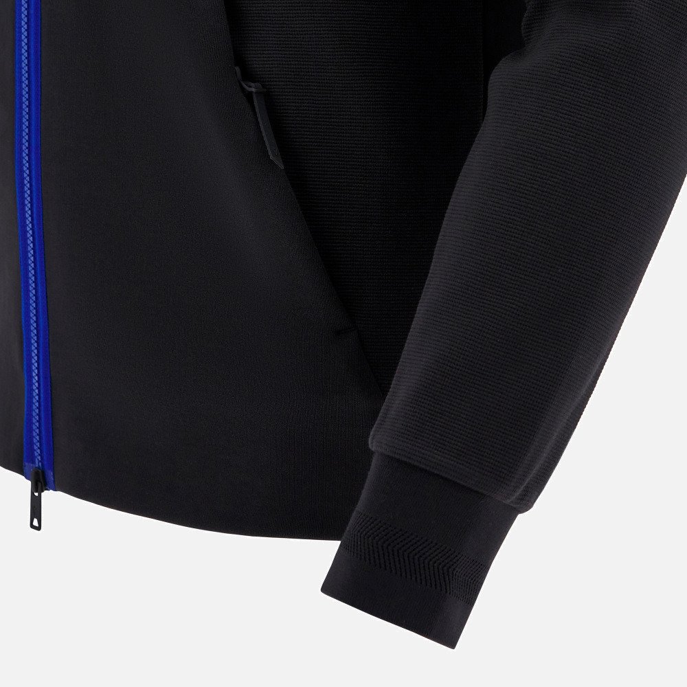 mikina na zip s kapucí Yamaha Racing s logem týmu MotoGP na přední straně. Žebrovaná textura na rukávech,vynikající střih a tmavě modré doplňky dodávají oděvu nádech elegance a dodávají mu vizuální dynamiku.Pružný a pohodlný materiál