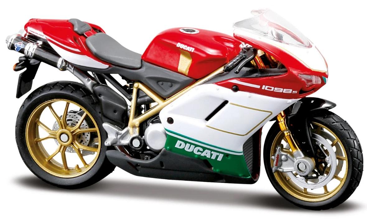 Kovové modely motocyklů v modelovém měřítku 1:18. Motocykly mají otáčivá řidítka a odpruženou zadní nápravu. Jsou usazeny na černém plastovém podstavci.