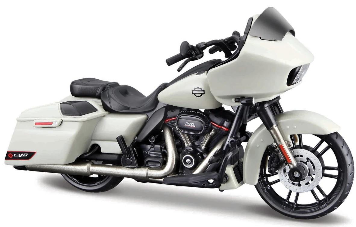 Kovové modely motocyklů v modelovém měřítku 1:18. Motocykly mají otáčivá řidítka a odpruženou zadní nápravu. Jsou usazeny na černém plastovém podstavci.