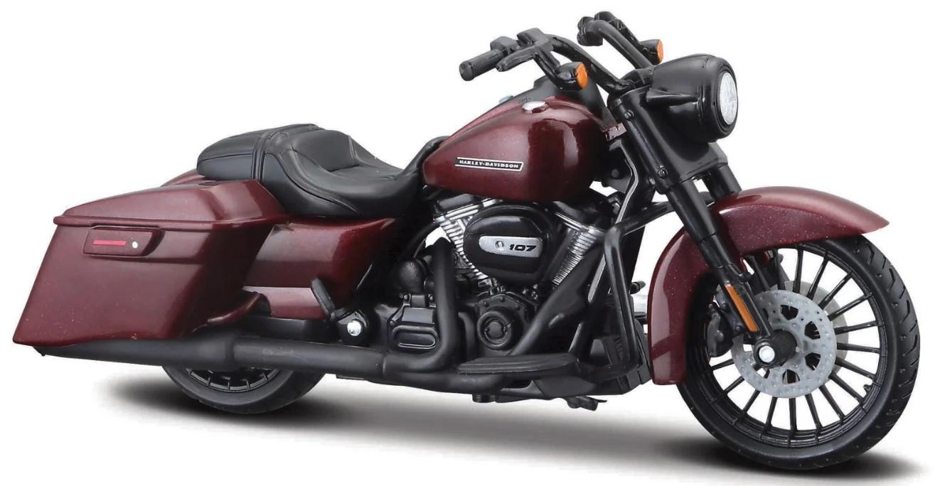 Kovové modely motocyklů v modelovém měřítku 1:18. Motocykly mají otáčivá řidítka a odpruženou zadní nápravu. Jsou usazeny na černém plastovém podstavci.
