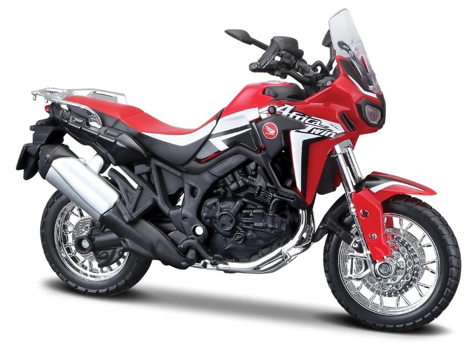 Kovové modely motocyklů v modelovém měřítku 1:18. Motocykly mají otáčivá řidítka a odpruženou zadní nápravu. Jsou usazeny na černém plastovém podstavci.