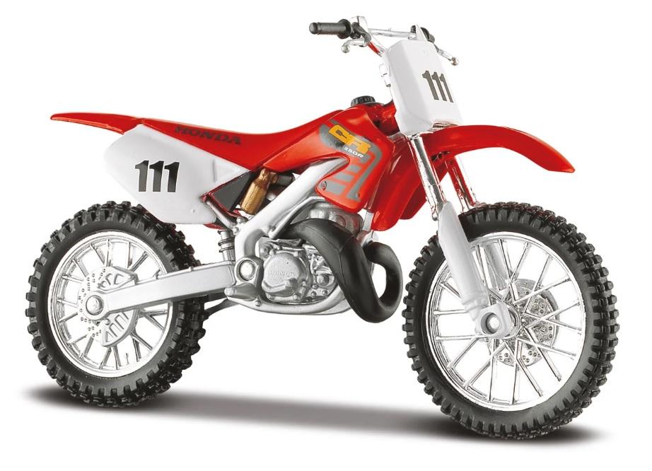Kovové modely motocyklů v modelovém měřítku 1:18. Motocykly mají otáčivá řidítka a odpruženou zadní nápravu. Jsou usazeny na černém plastovém podstavci.