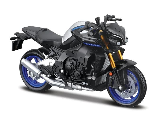 Kovové modely motocyklů v modelovém měřítku 1:18. Motocykly mají otáčivá řidítka a odpruženou zadní nápravu. Jsou usazeny na černém plastovém podstavci.