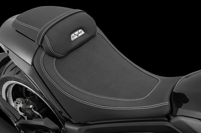 Sedlo spolujezdce slouží jako plyšové sedátko pro partnera i jako praktické opěradlo pro větší pohodlí při samostatné jízdě. Uvolněná jízdní pozice doplňuje ležérní siluetu modelu C1002V.