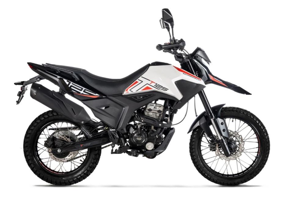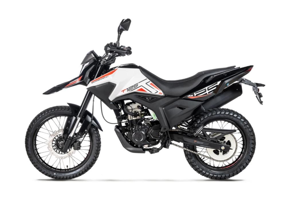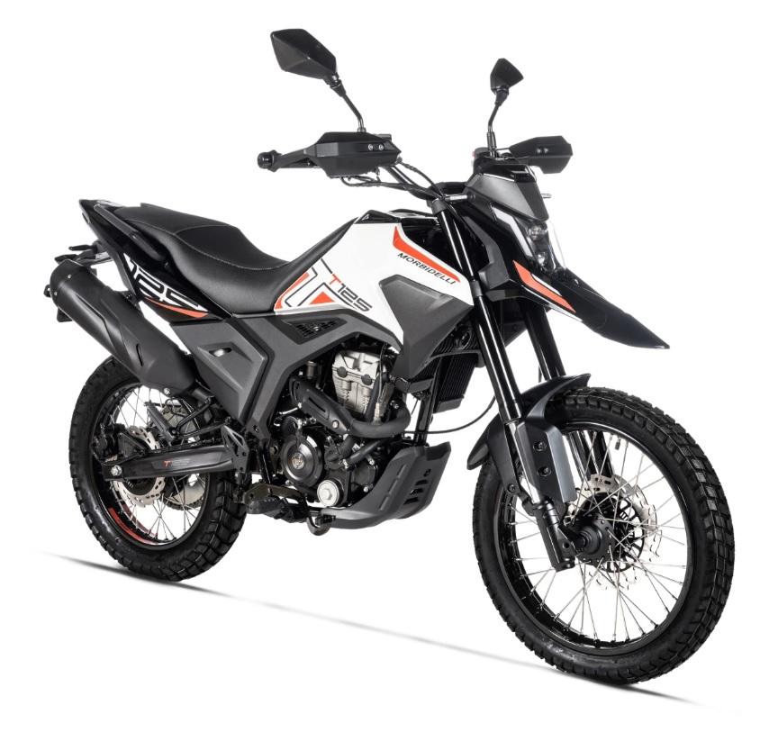 Hbitost ve městě, divočina mimo něj. Kompaktní, lehký motocykl Morbidelli T125 je zkonstruován tak, aby se s jistotou pohyboval mezi městským provozem a lehkým terénem. Jeho kapalinou chlazený motor DOHC o objemu 124 cm3 s certifikací Euro 5+ dosahuje výkonu 14,21 k při 9500 ot/min a točivého momentu 11,0 Nm při 7600 ot/min a nabízí efektivní výkon pro každodenní použití. Ocelový rám s dvojitou kolébkou nese přední vidlici upside-down o průměru 41 mm se zdvihem 177 mm a zadní tlumič s nastavitelným předpětím a zdvihem 55 mm, zajišťují pohodlí a stabilitu na smíšeném povrchu. O brzdění se starají kotoučové brzdy s dvoupístkovými třmeny a systémem ABS s 265 mm vpředu a 220 mm vzadu. Kolo o rozměru 19 palců vpředu a 17palců, vzadu jsou vypletena špicemi a obuta pneumatikami s hrubým vzorkem. Spolu se světlou výškou 220 mm poskytují solidní všestrannost pro použití na lehkých stezkách. Horizontální přístrojový panel LCD nabízí přehledné údaje, které doplňuje plné LED osvětlení, USB nabíjení a osvětlené ovládací prvky na řídítkách. S pohotovostní hmotností 148 kg a výškou sedla 820 mm nabízí model T125 vynikající přístupnost a ovladatelnost pro širokou škálu jezdců. Je jednoduchý, robustní a všestranný, stvořený pro každodenní jízdu.