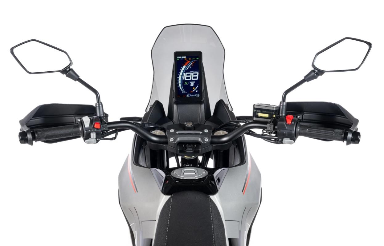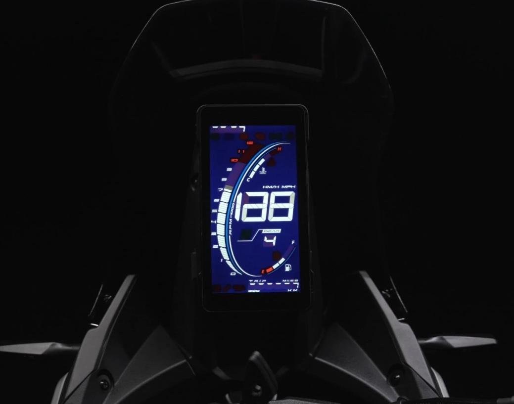 Vertikální digitální displej s ukazateli rychlosti, rychlosti a paliva. USB port pro nabíjení je součástí dodávky. Podsvícené spínače pro intuitivní použití v noci.