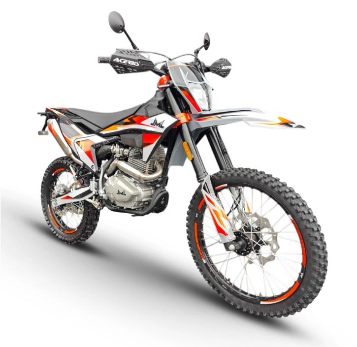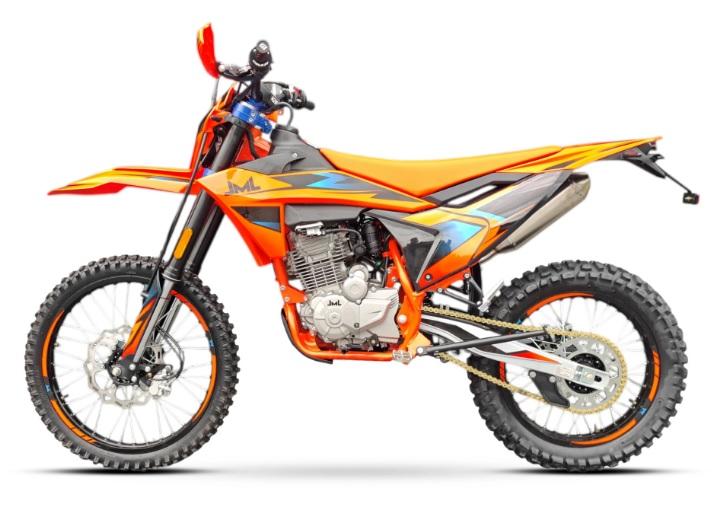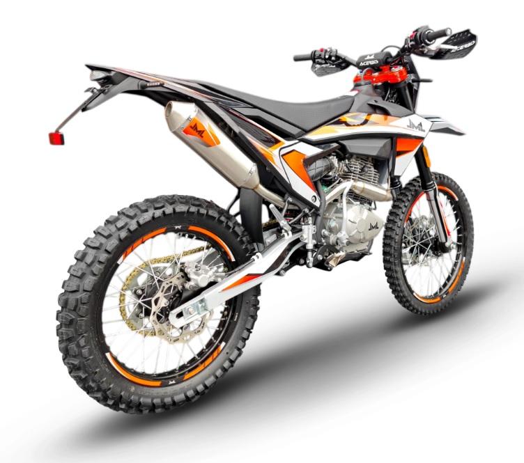 Motocykl je vybaven moderním palubním počítačem s diagnostickým portem OBD2. To umožňuje rychlé čtení provozních parametrů motoru, zaznamenávání a analýzu systémových chyb a přístup k identifikačním údajům motocyklu, jako je třeba VIN. Díky tomu je servis a diagnostika rychlá a přesná – jak v profesionálních dílnách, tak i pomocí mobilních aplikací a rozhraní OBD2. Moderní digitální počítadlo kilometrů poskytuje jasné údaje o rychlosti, počtu najetých kilometrů a provozních parametrech motoru, a to i na přímém slunečním světle. Nevýhodou je absence ukazatele paliva ani kontrolky rezervy – motocykl neposkytuje varování před nízkou hladinou paliva. To je důsledek chyby v homologačním procesu Euro 5+, která tuto funkci vyloučila. Společnost JML si je tohoto omezení vědoma a pracuje na doplňkovém řešení, které umožňuje sledování rezervy paliva. Kapotáže jsou vyrobeny z odolného materiálu PP (polypropylen), stejného jako v japonských a evropských prémiových motocyklech – odolného proti nárazu a prasklinám. Motocykl je vybaven moderním LED osvětlením vpředu i vzadu, které zajišťuje vynikající viditelnost a nízkou spotřebu energie. Palivová nádrž vybavená palivovým čerpadlem o objemu 8,5 litru poskytuje dostatečný dojezd jak pro delší cesty, tak pro intenzivní jízdu v terénu bez nutnosti častého doplňování paliva.