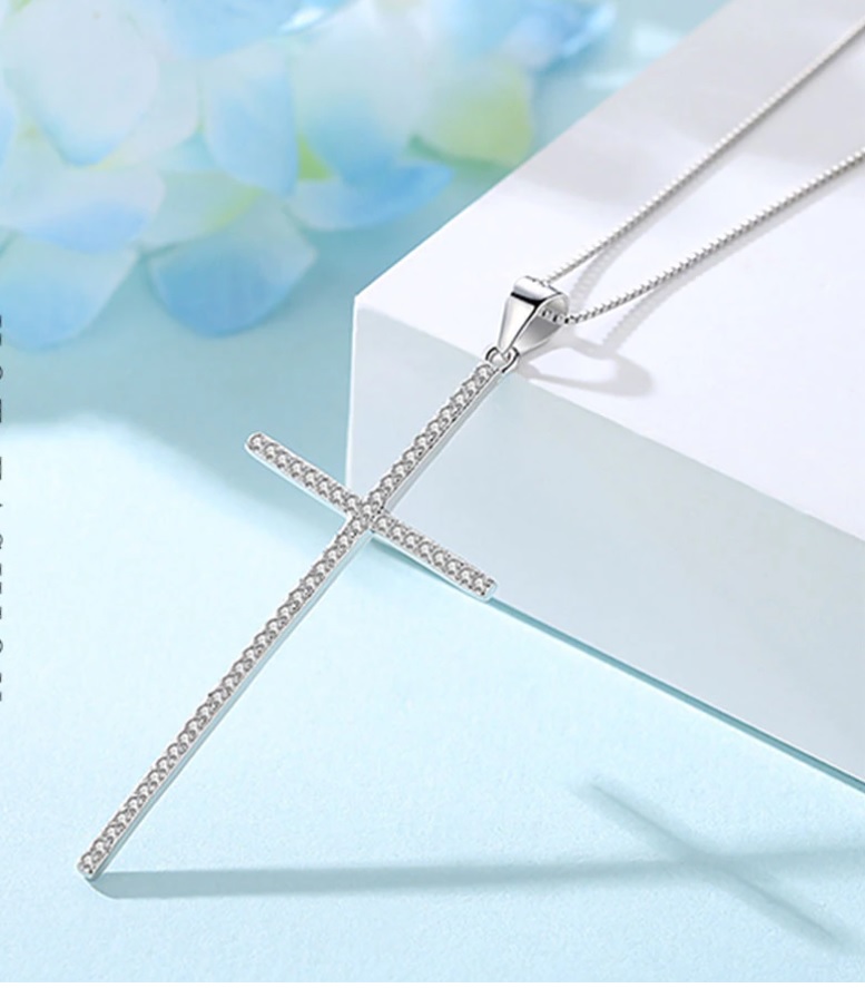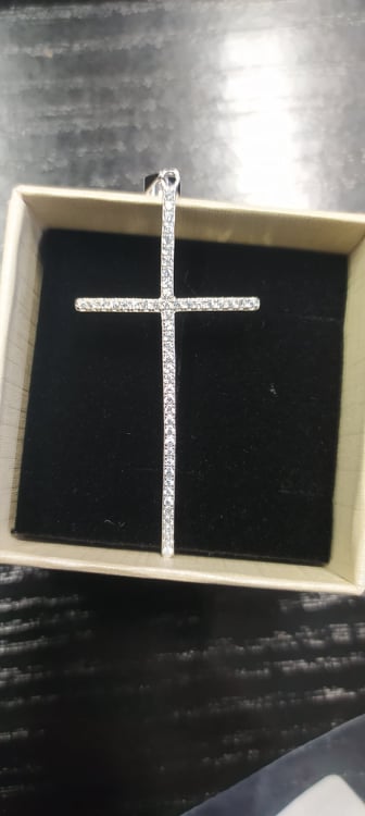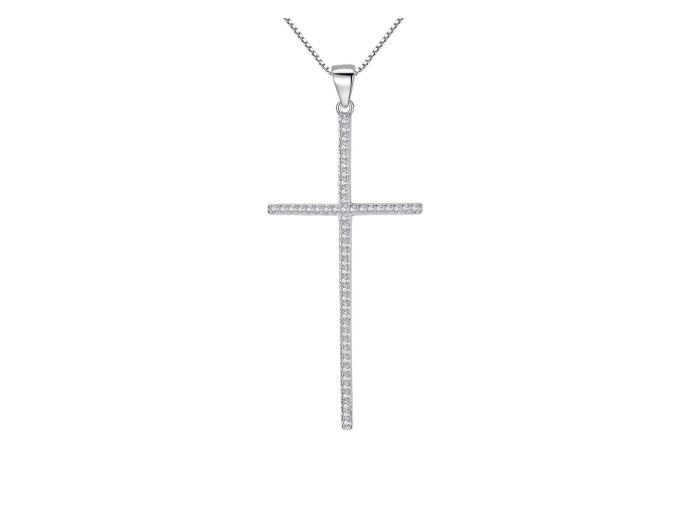 Luxusní přívěšek ve tvaru kříže osazený čirými zirkony.